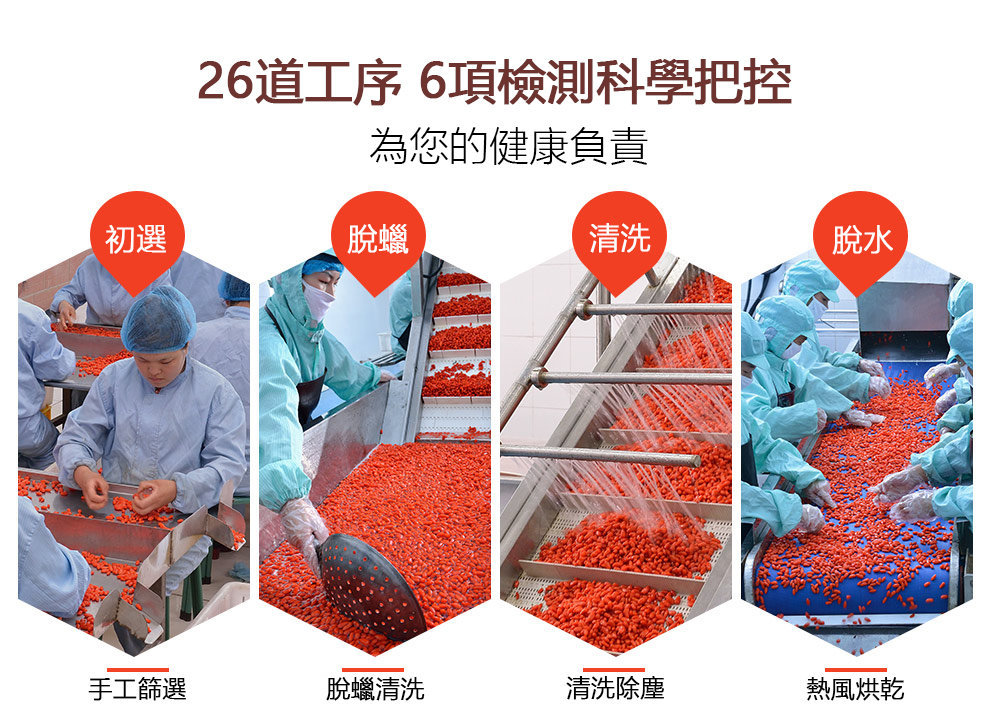 精選寧夏中寧縣特優級枸杞子。26道工序, 6項檢測科學把控,嚴格遵守枸杞行業之最高規格,同時獲得ISO 9001﹑ISO 22000及HACCP 國際認證。 寧夏「中寧枸杞」位居寧夏五寶之首,是枸杞中之上品,1995年中寧縣被國務院命名為「中國枸杞之鄉」。自古以來便是進貢的上品。明朝弘治十四年(1501年)成書的《弘治寧夏新志》所列國朝歲貢項目中的枸杞,就是中寧枸杞。 |