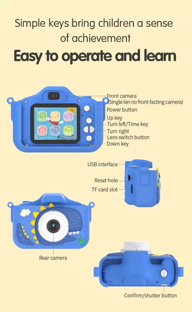 | 商品簡介 | 新款儿童相机拍照录影4800W高清双新品卡通恐龙儿童玩具;;颜色分类:霸王龙蓝色+32G内存卡+读卡器 |