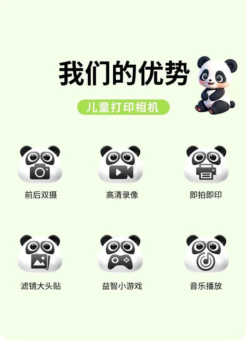 S1打印相机-绿熊猫(无TF卡)