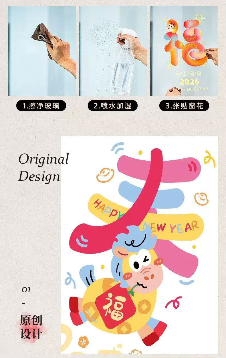 【2026新年快乐-毛绒版】玻璃贴(opp膜)