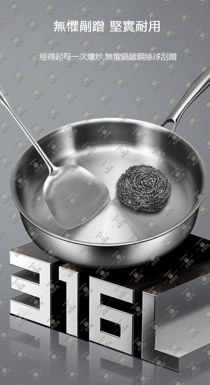 家用316不銹鋼無塗層平底鍋