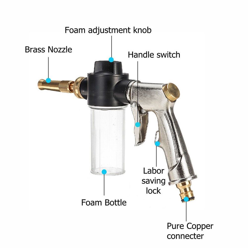產品:汽車泡沫清洗槍 顏色:銀色 材質:鋁合金/黃銅/塑料 手柄材質:鋅合金 噴塗距離:7-10m 手柄類型:握指 適用範圍:園林澆水、洗車、洗地 包裝清單: 1 個噴水器 1 個噴嘴 1 個泡沫瓶 |