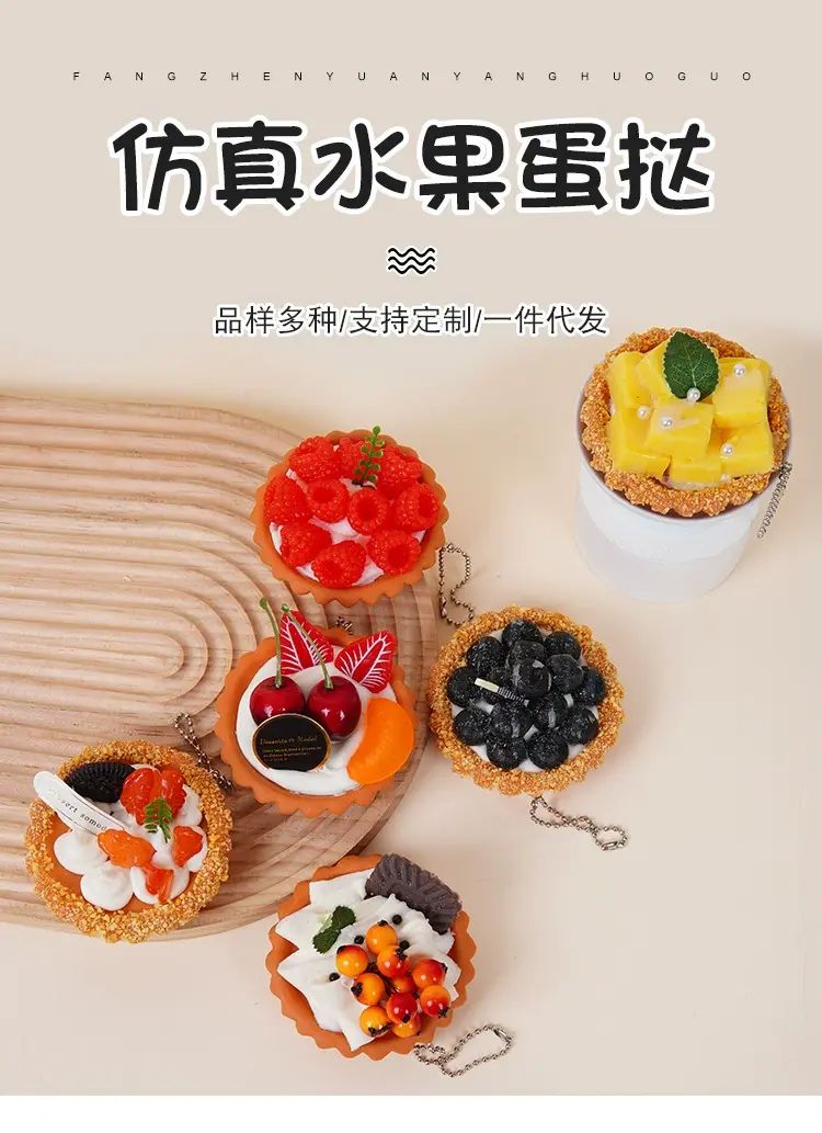 | 商品簡介 | 仿真水果蛋挞珠链挂件假葡挞盘挞样板间模型摆件趣味食玩钥匙扣;;颜色分类:6个一套水果蛋挞-无扣(不重复) |