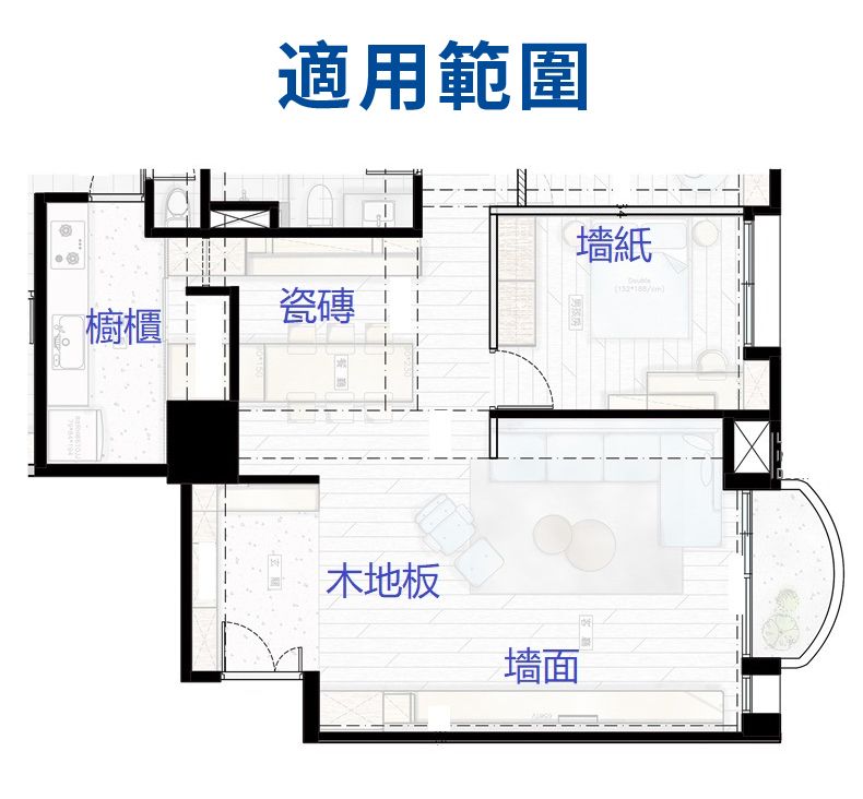 不適用於大理石材質表面。對於磁磚、塑膠等材料及其它未知表面,可先選擇隱蔽處試用。