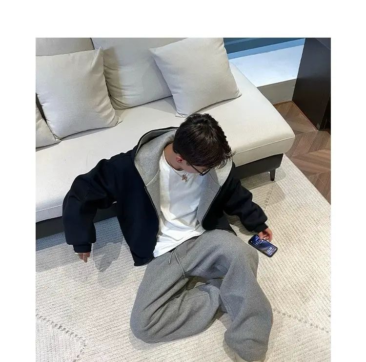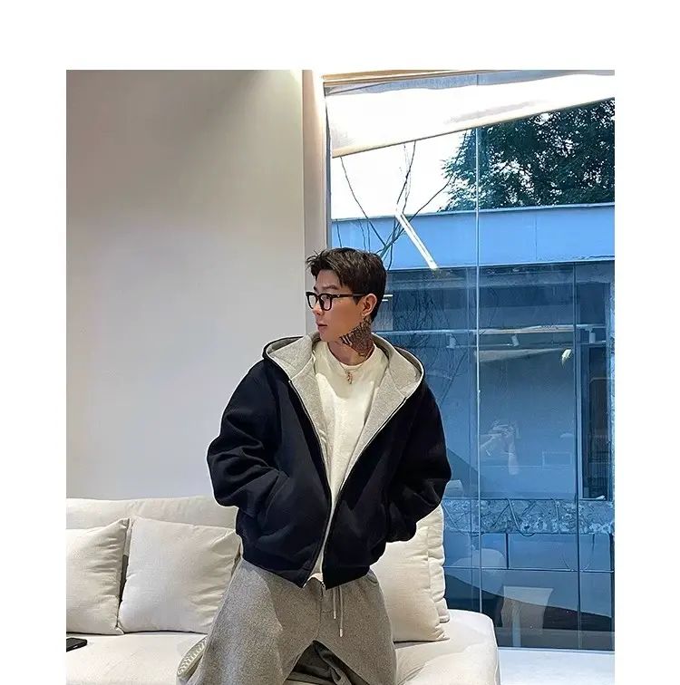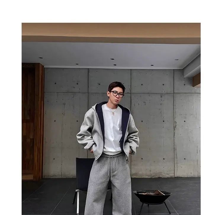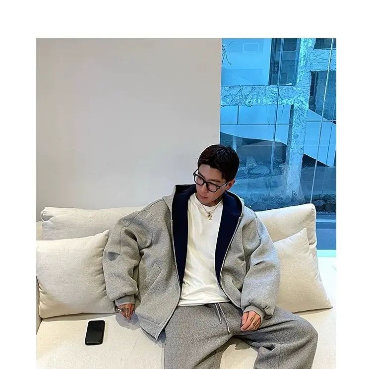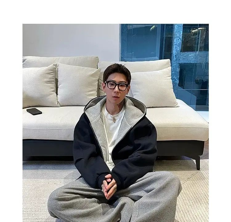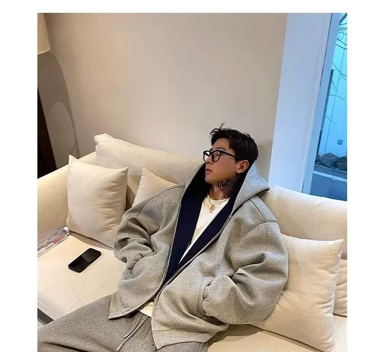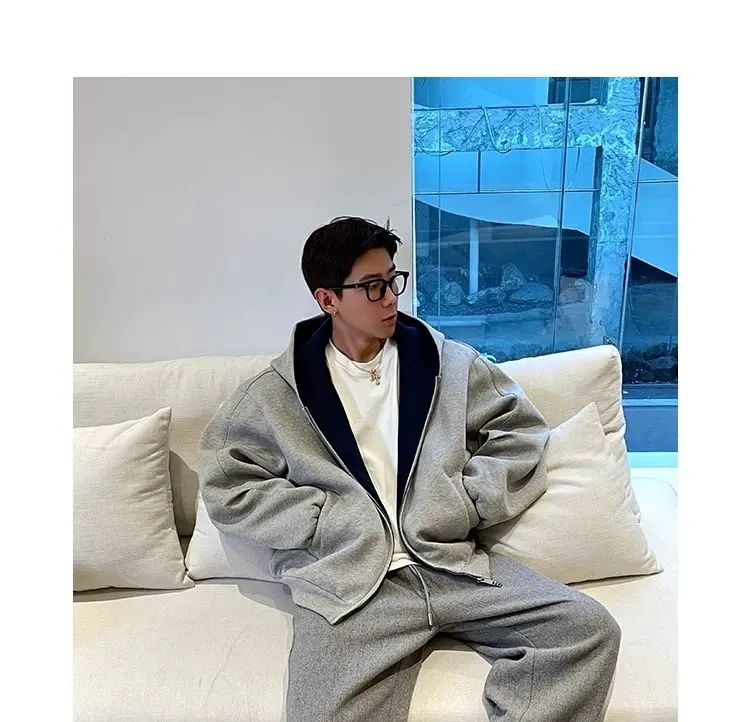 春秋男女高街卫衣连帽衫外套复古潮牌美式撞色;灰色;M關於 拼翔