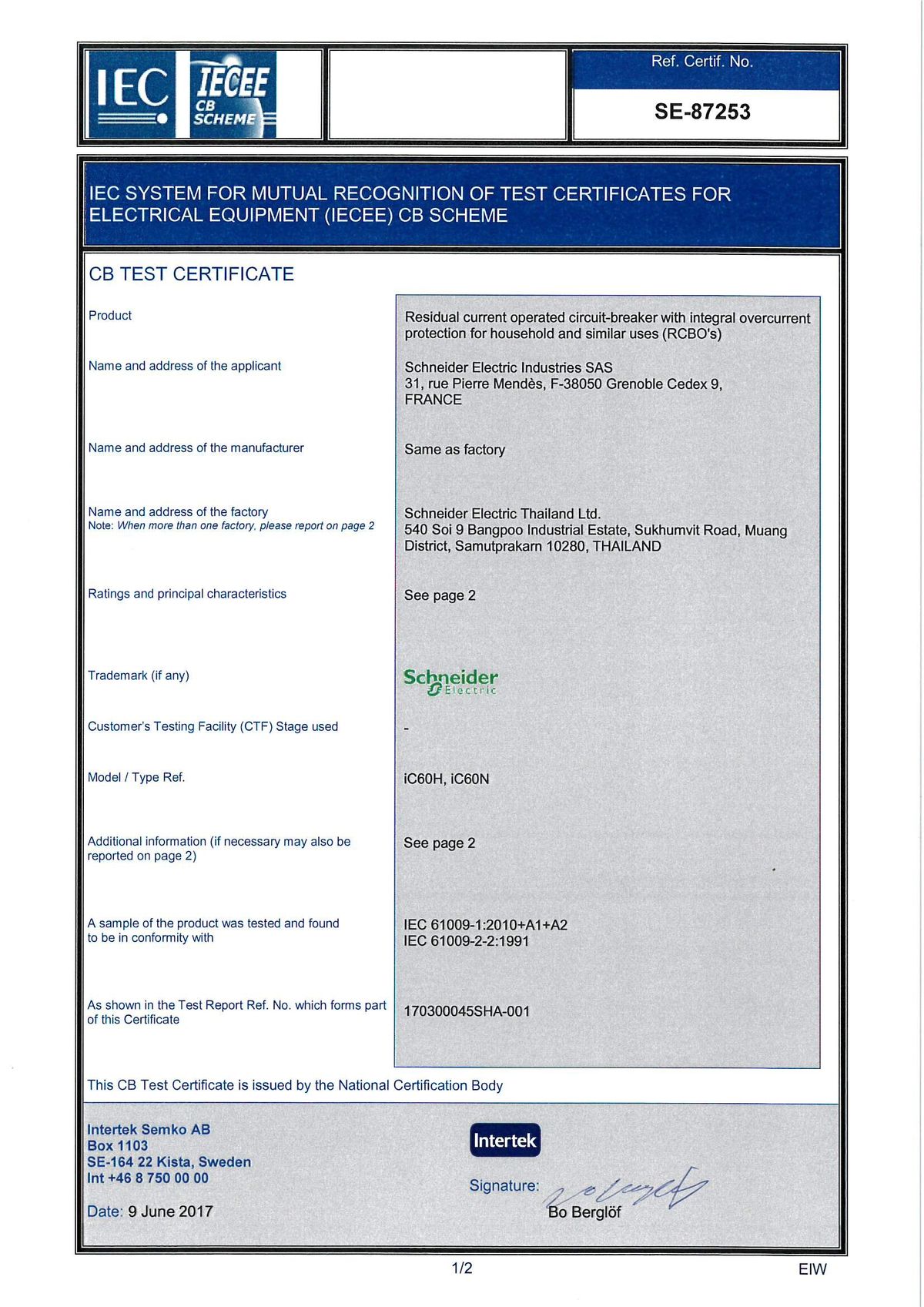標準: IEC 61009-2-2, IEC 61009-1, AS/NZS 61009.1