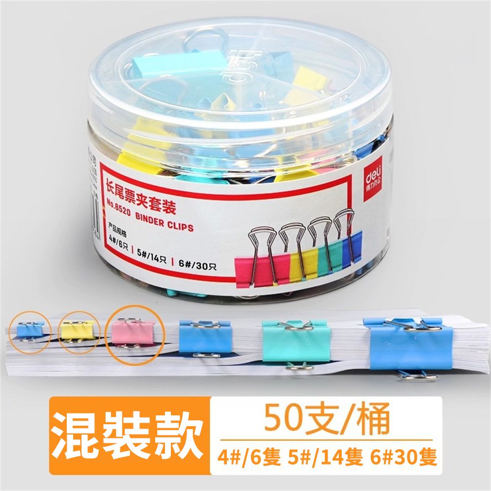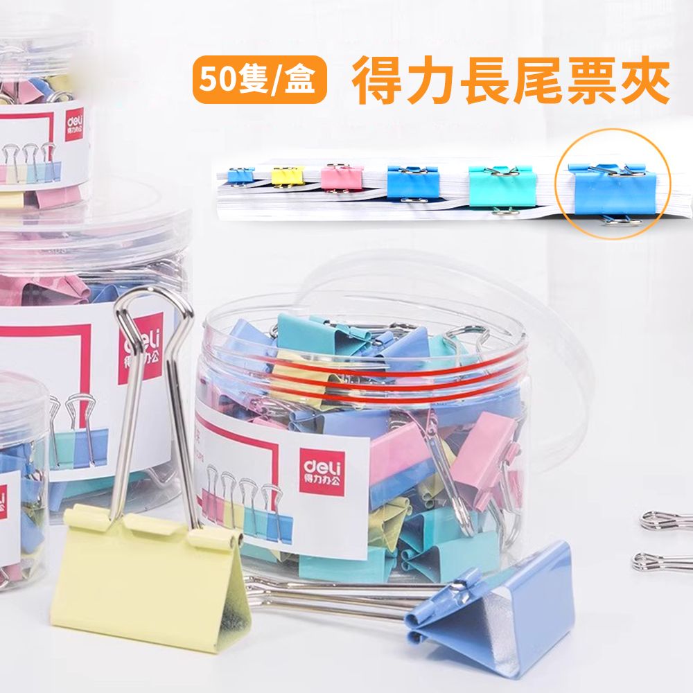 得力 彩色長尾票夾 50隻/組合裝 文件分類 清新多色 多種功能 不易生鏽 小票夾 大用處 辦公生活學習好助手 告別凌亂 按需分類不同文件 |
