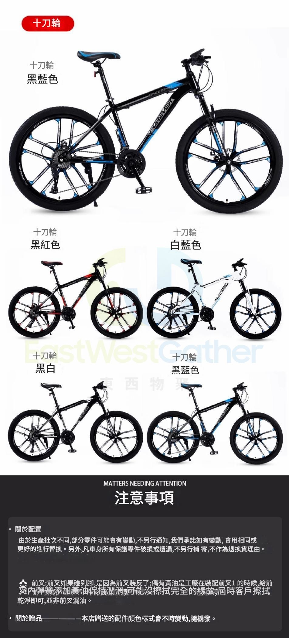 單車 山地車 變速單車 自行車 腳踏車 越野單車 權威認證,騎乘更放心。 重新出發,至高可選30速。強大隨行更具性價比 可選擋位多,騎乘越省力。 加厚管壁,載重強穩定堅固。平均分散重力與衝擊力 可鎖死避震前叉。靈活切換 舒適應對各種路面,擁有良好的避震效果有效抵消震盪 雙碟煞車系統。前後搭載雙碟煞煞車,靈敏不滑車 專業山地變速套件。順暢精準手感出眾,機械使用壽命較長 10片定位塔輪。齒位精準,鏈條受力均勻,快速孌速降低掉鏈狀況 加厚耐磨越野輪胎。增強與地面的摩擦,抓地性能優越。加厚處理不易變形 久坐不累,舒適鞍座。緩解騎乗疲勞讓您久坐不累 【請注意:所有單車都是用Gogovan派送到客人屋企大廈路邊交收。】 以下商品圖只供參考,一切細節與配置以主圖為準。 我們會提供售後服務的,包括技術支援及更換配件等。 價錢包括送貨上門, 如果送貨地方是屬於偏遠地方,需要附加費用。 |