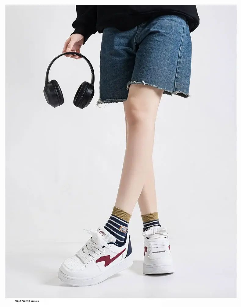 商品簡介 环球女鞋原创设计感厚底小白鞋女款2025新款爆款板鞋百搭小众鞋子;白蓝红;36