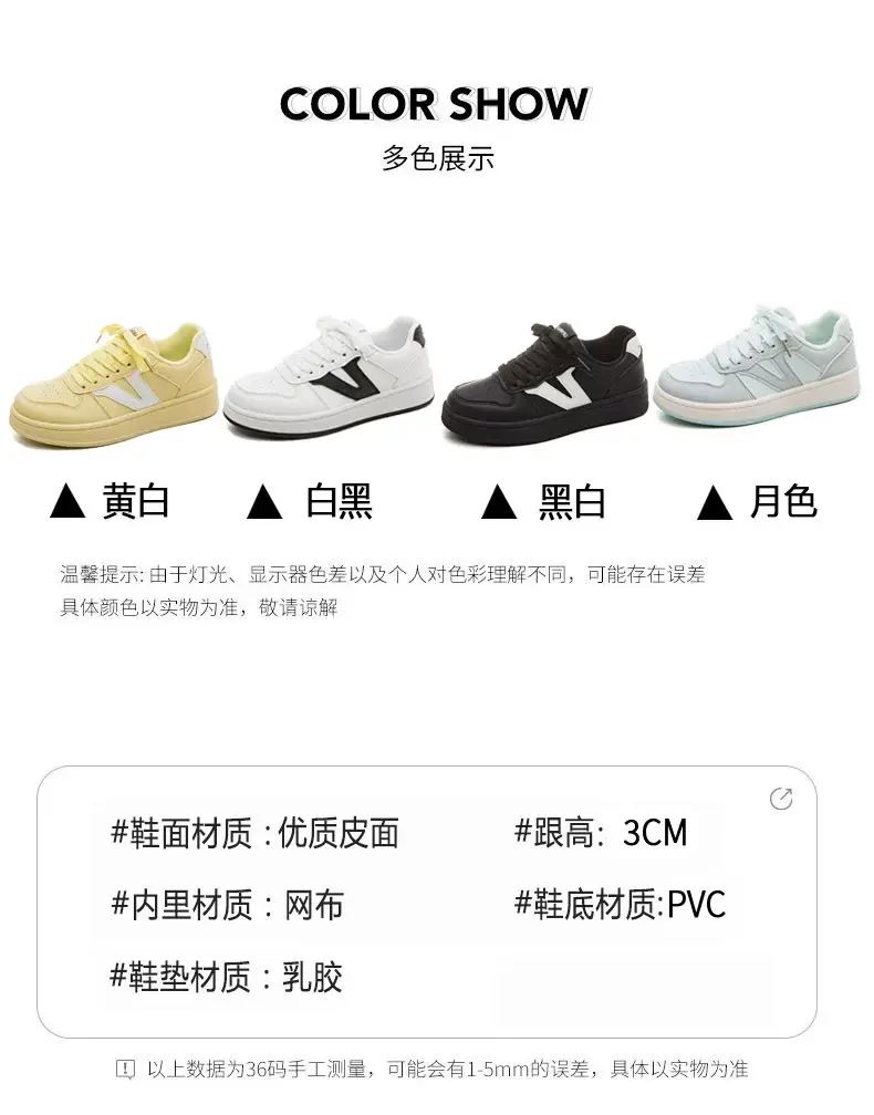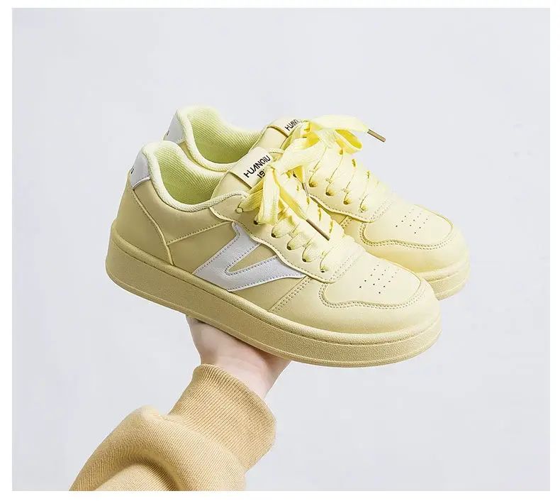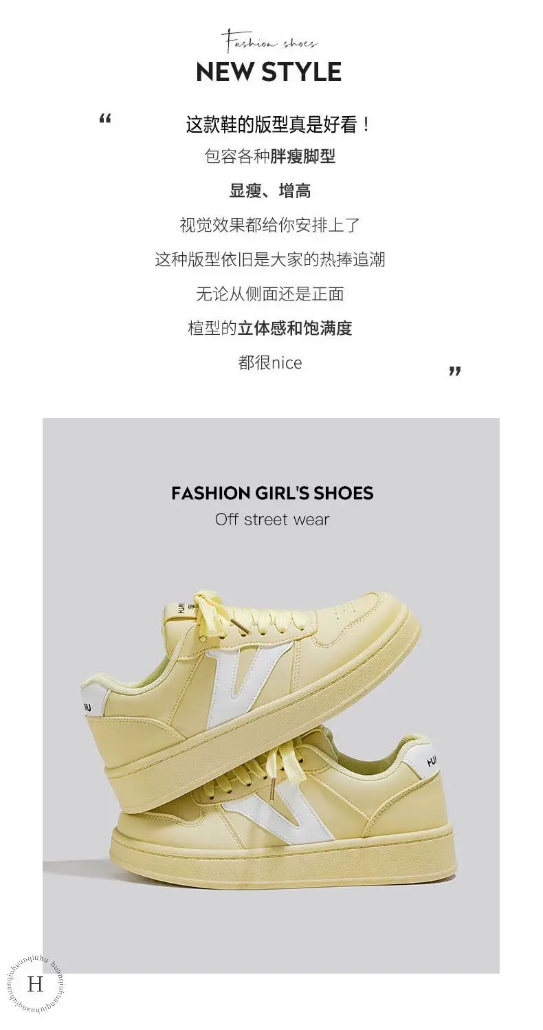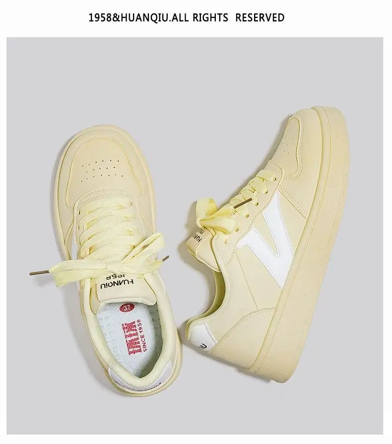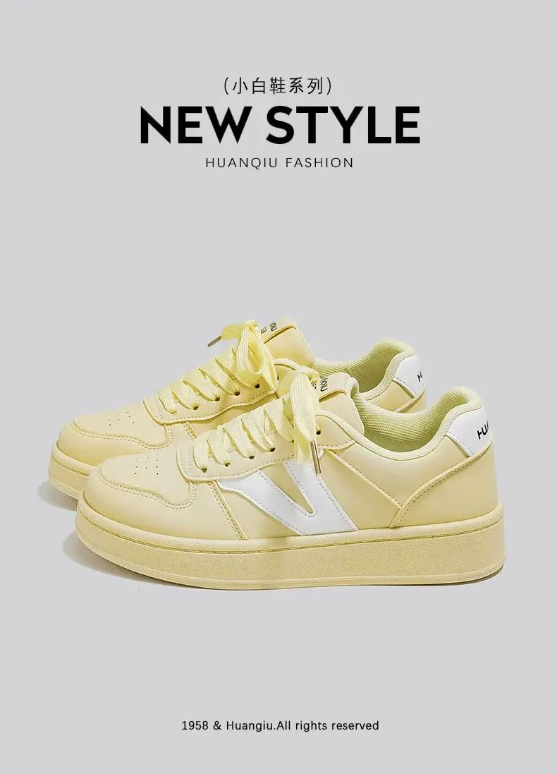 商品簡介 环球小众不撞款厚底小白鞋女款2025春季新款百搭学生校园轻便板鞋;黄白;35