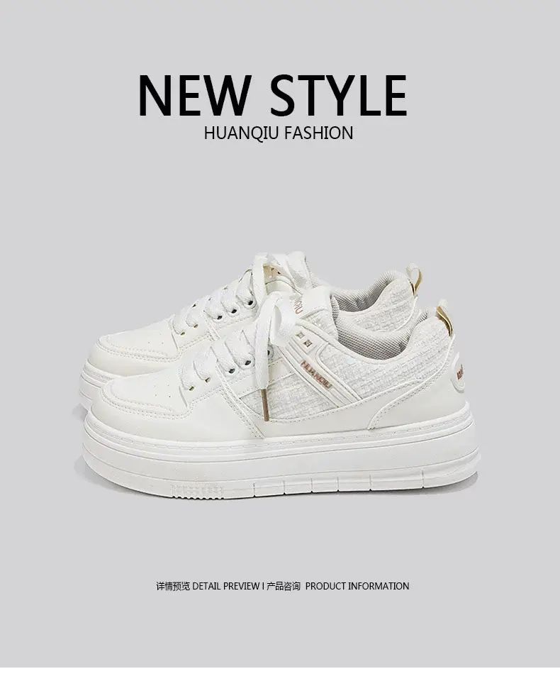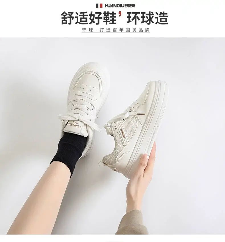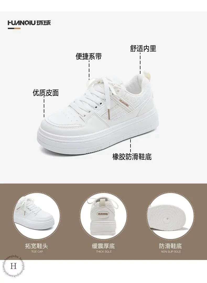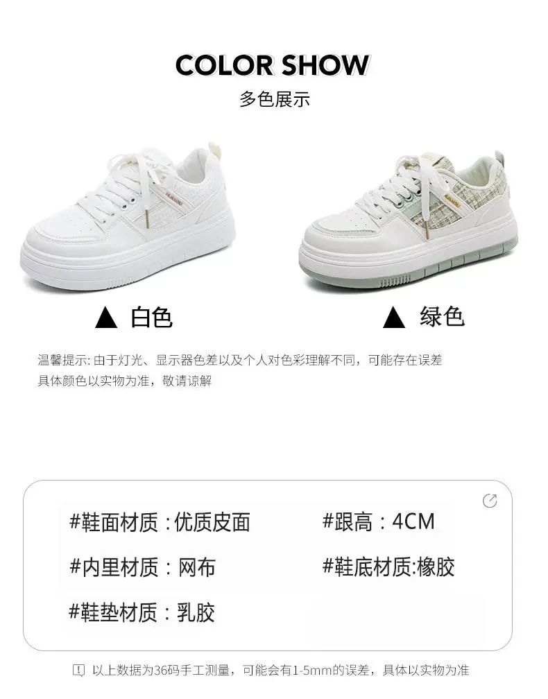 商品簡介 环球小香风奶白色小白鞋女款2025春季新款甜美百搭厚底轻便休闲鞋;奶白色;35