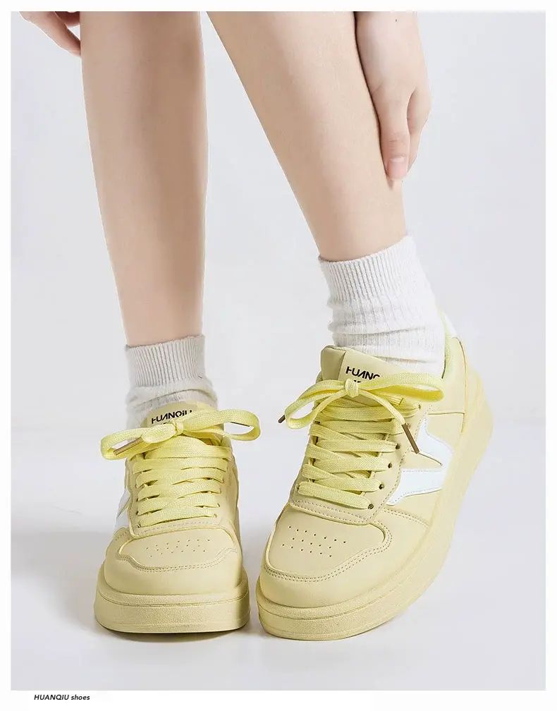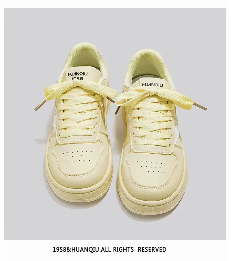 商品簡介 环球月色小众不撞款小白鞋女2025新款爆款百搭学生轻便舒适板鞋潮;黄白 升级款;36