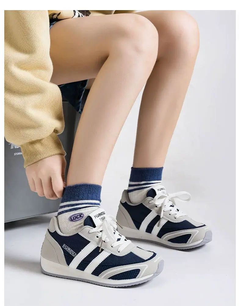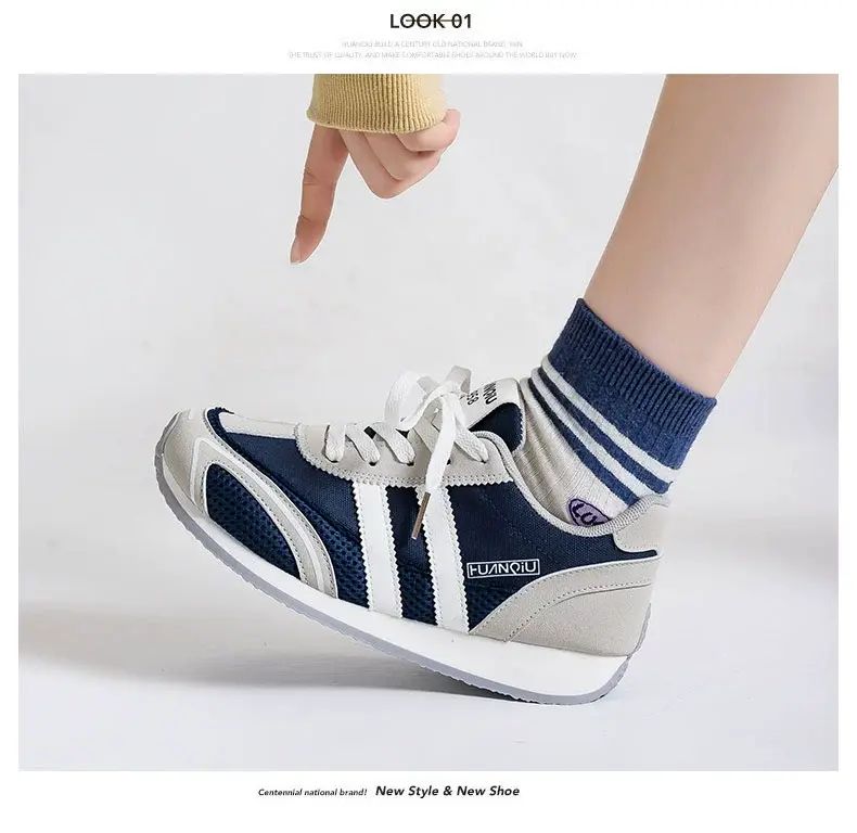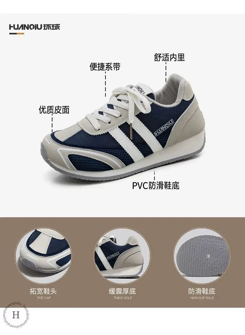 商品簡介 环球甜酷阿甘老爹鞋女2025新款德训鞋百搭舒适不累脚厚底运动鞋潮;蓝色;35