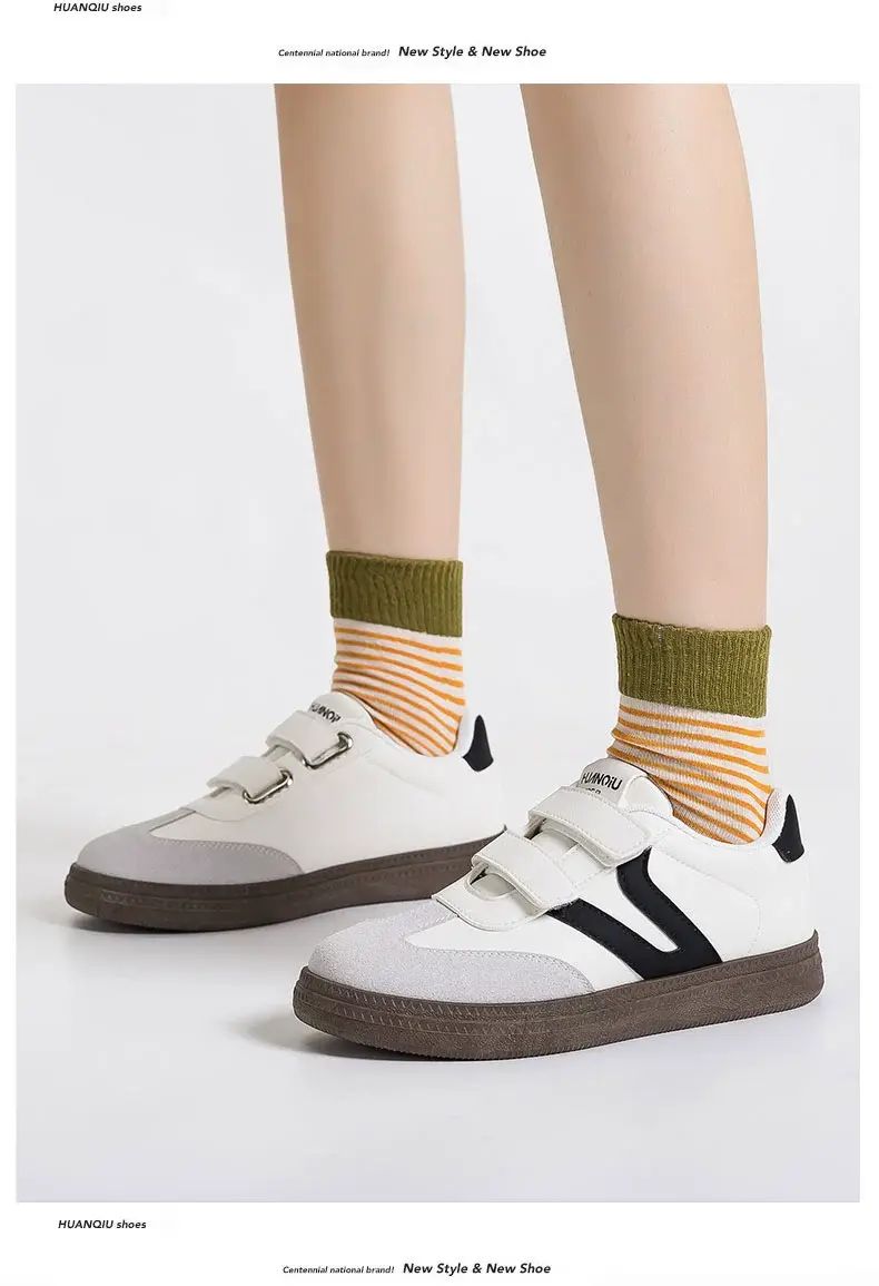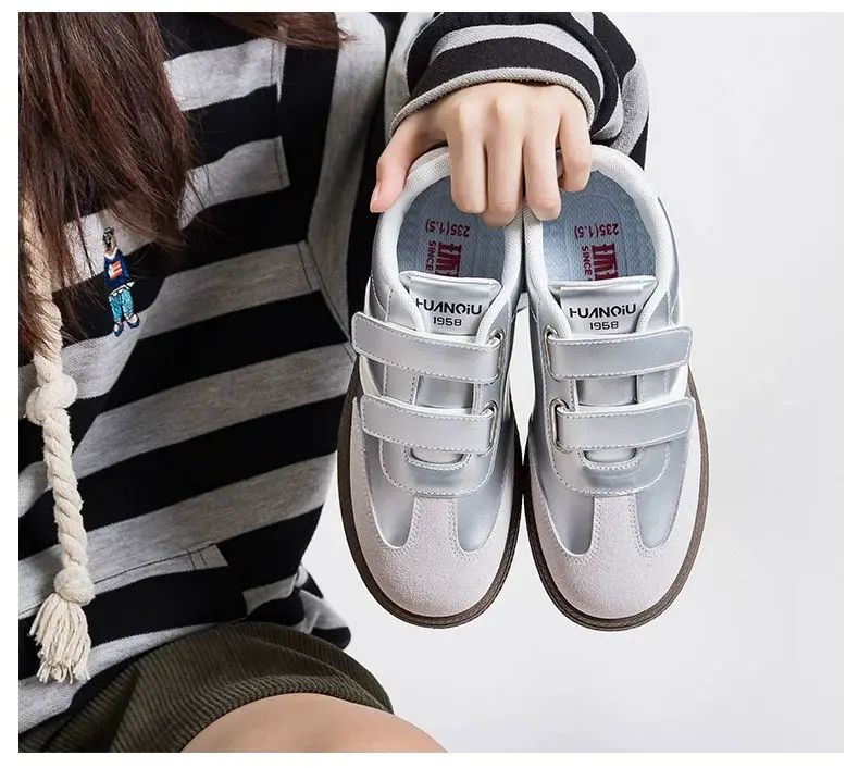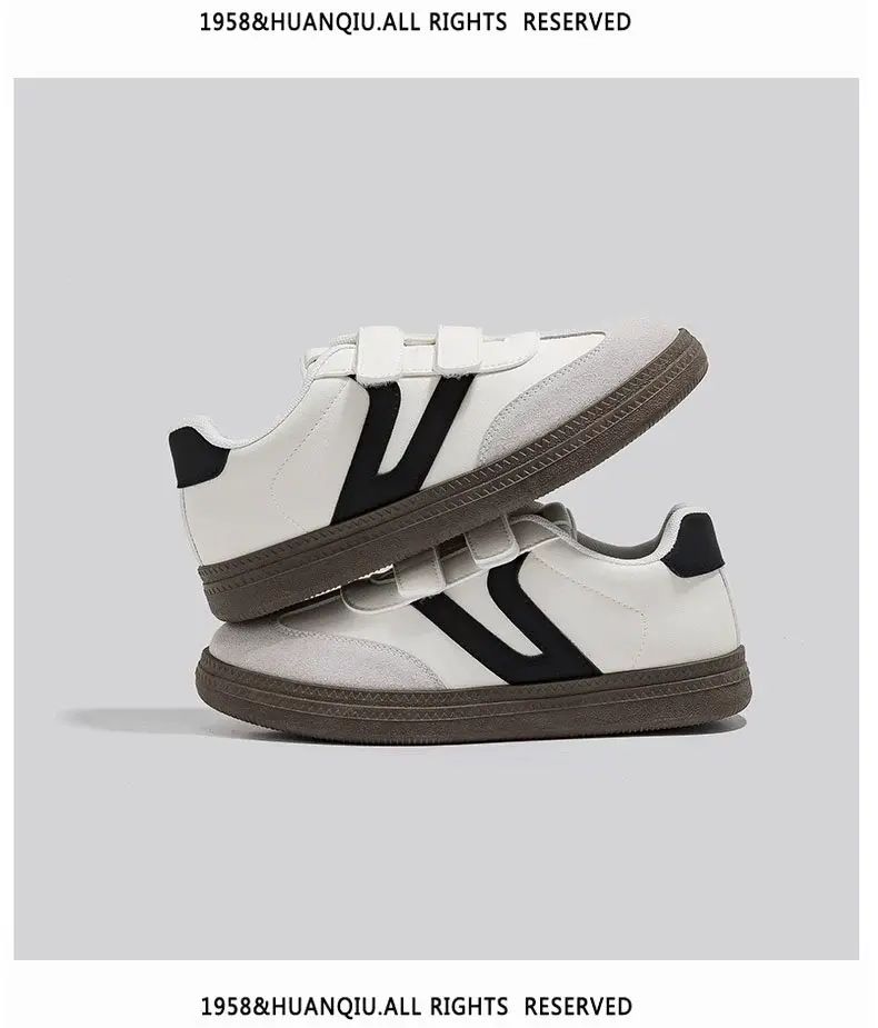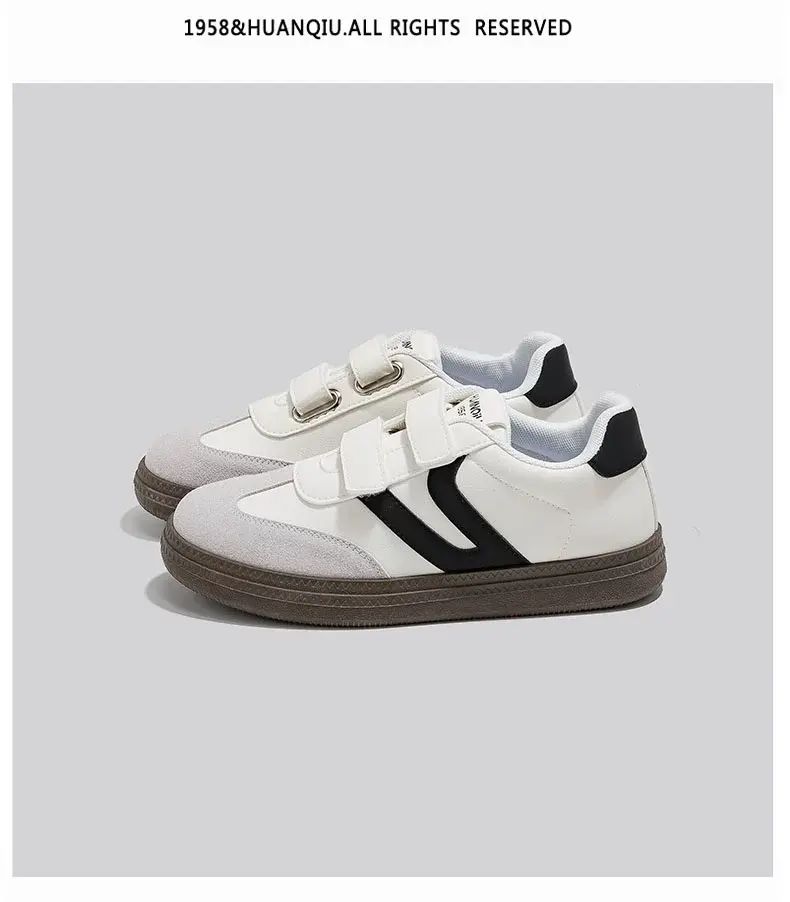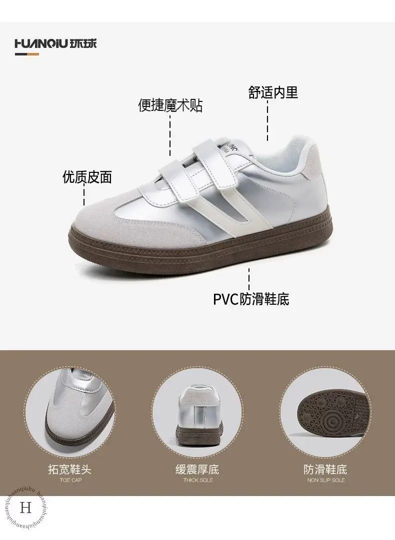 商品簡介 环球经典软底魔术贴德训鞋女2025新款爆款小白鞋女款百搭休闲板鞋;米黑;38