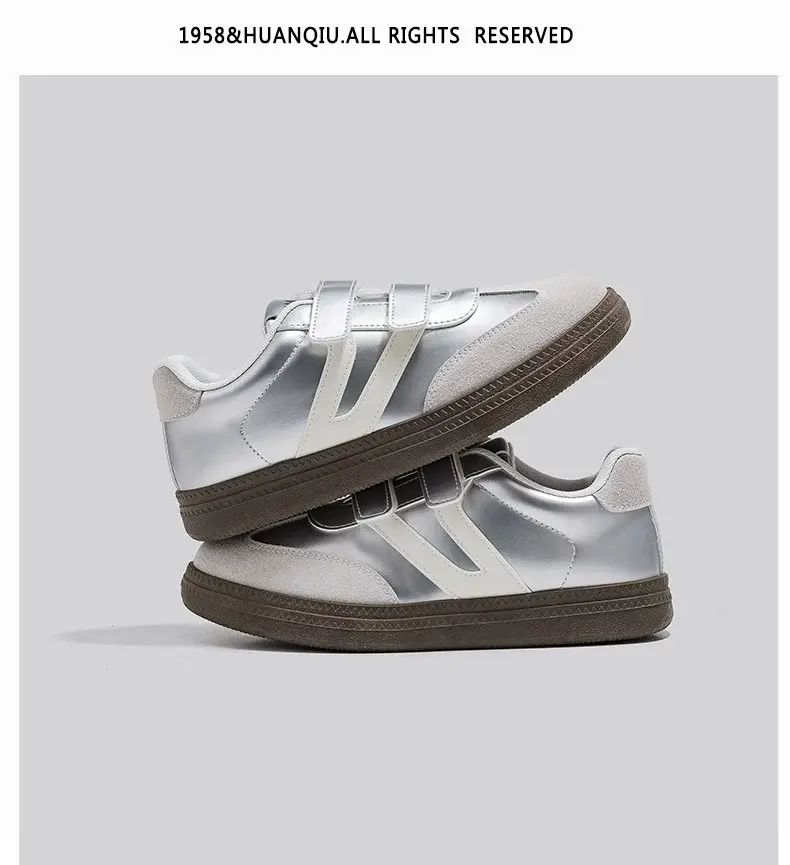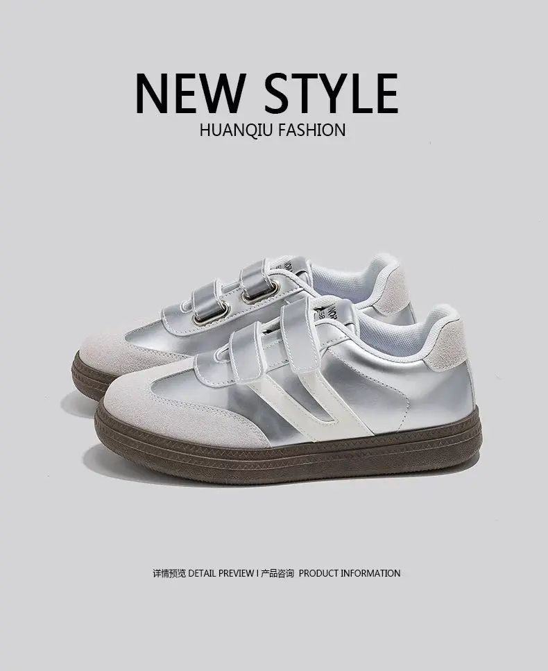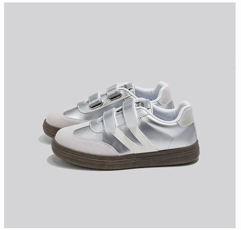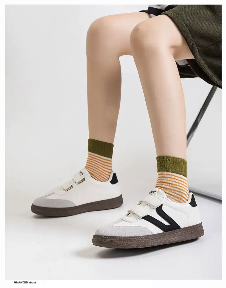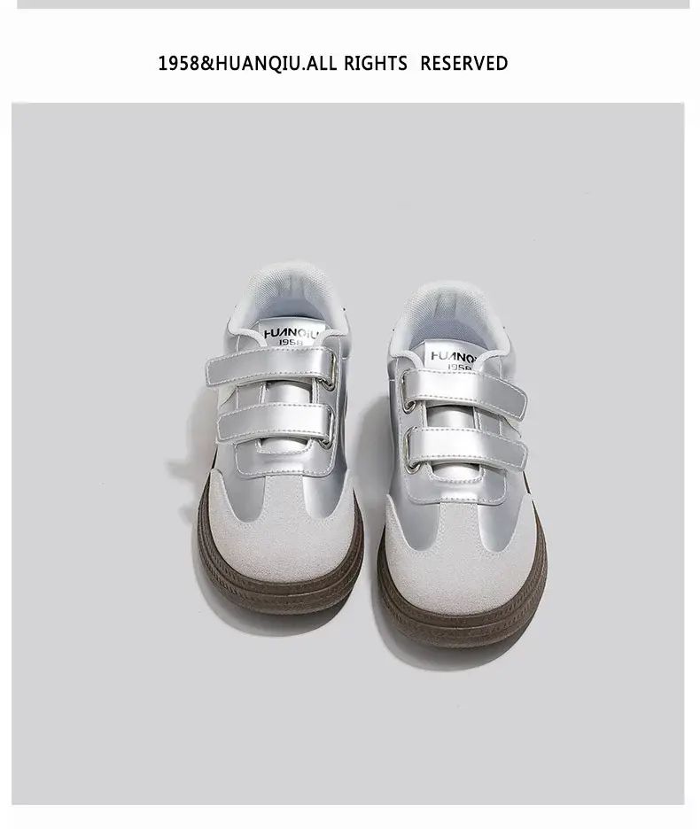 商品簡介 环球经典软底魔术贴德训鞋女2025新款爆款小白鞋女款百搭休闲板鞋;米黑;38