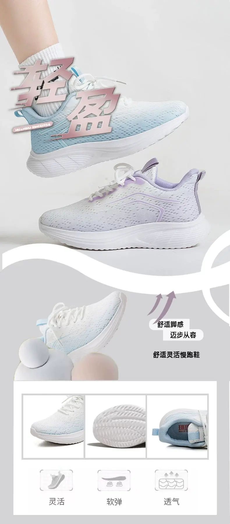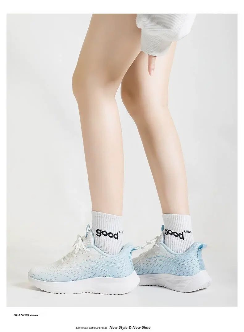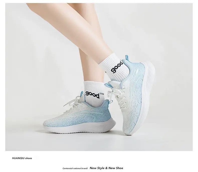 商品簡介 环球网面透气运动鞋女2025夏季新款百搭轻便软底防滑休闲跑步鞋潮;白蓝;35