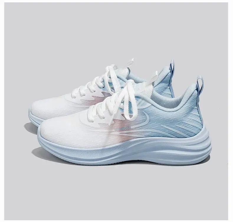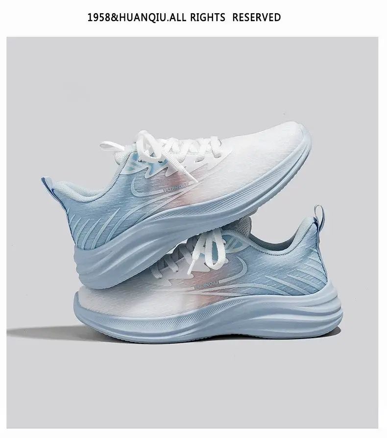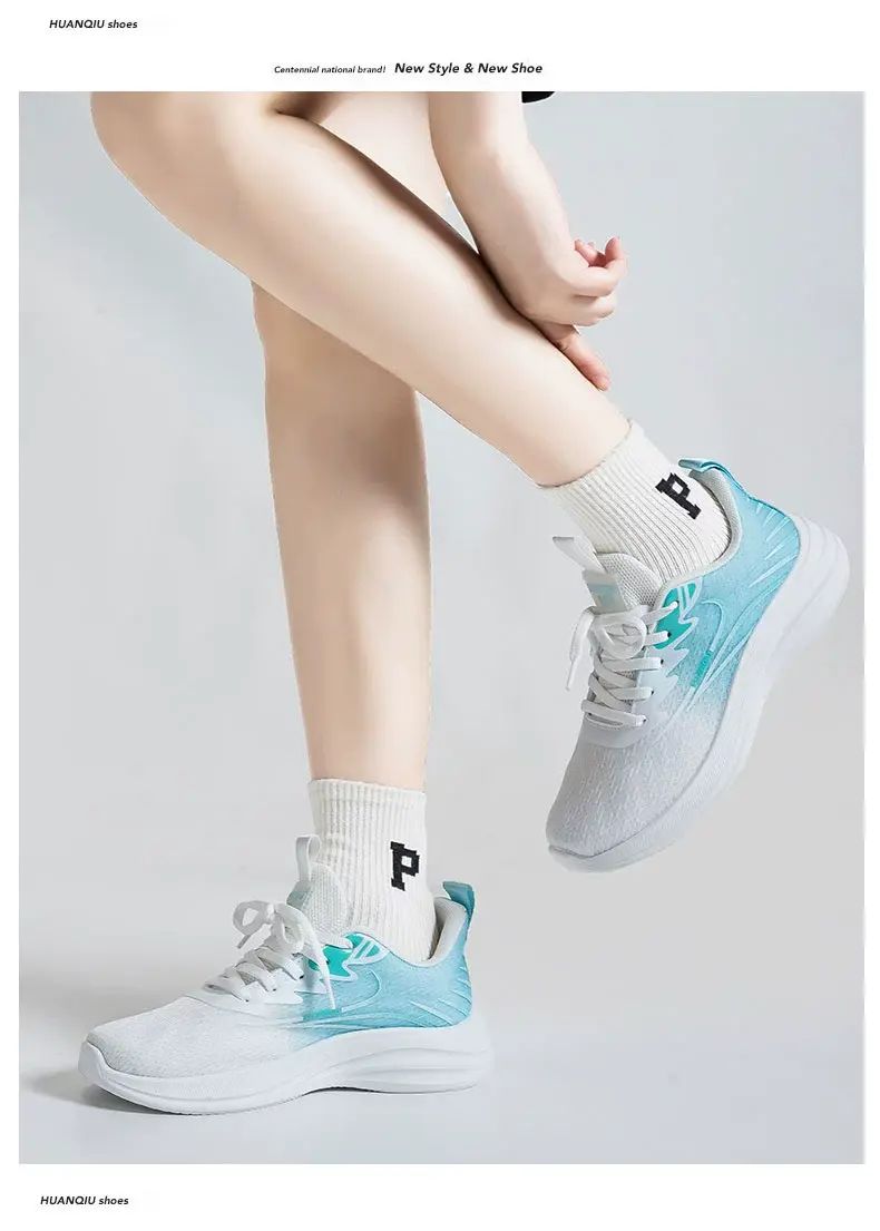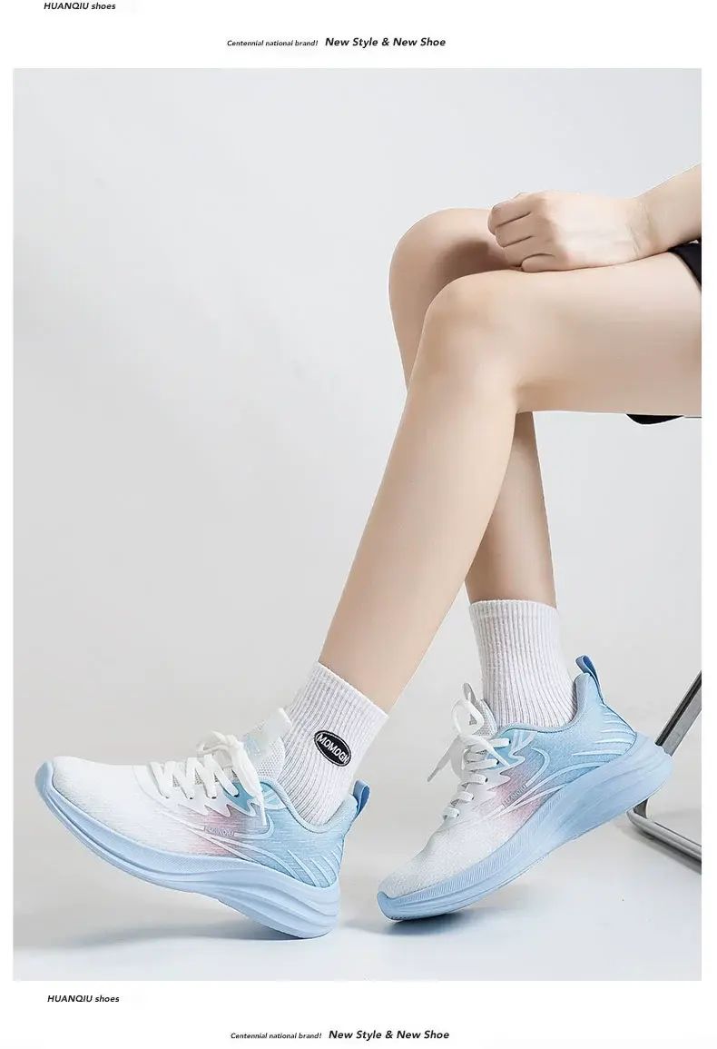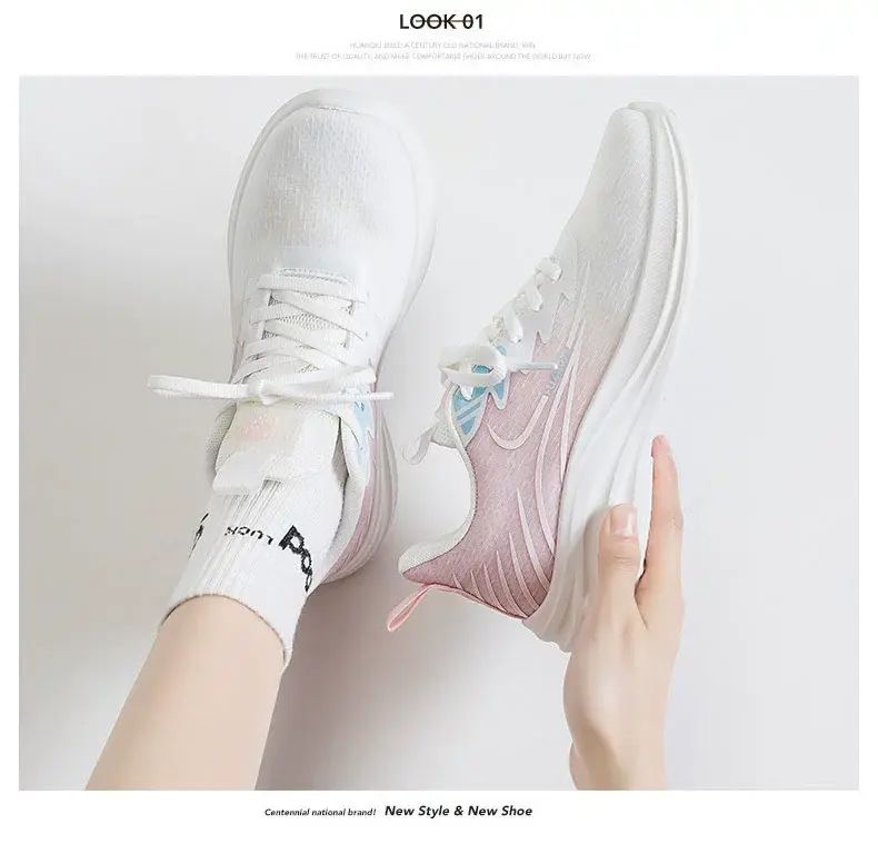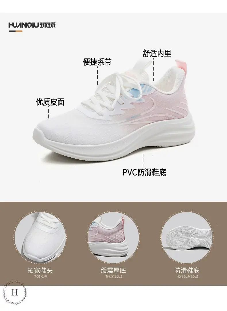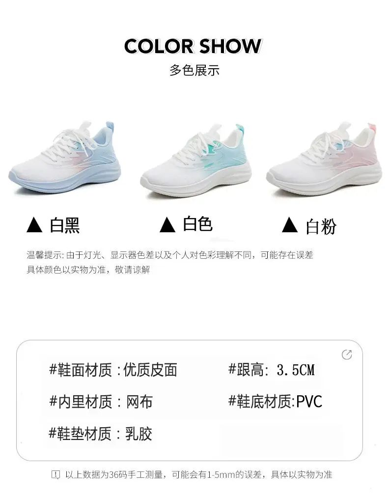 商品簡介 环球网面透气运动鞋女2025夏季新款高颜值百搭学生轻便休闲跑步鞋;白绿 升级款;37