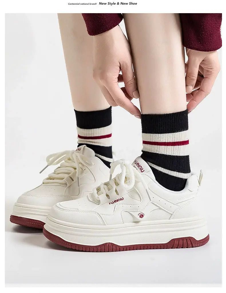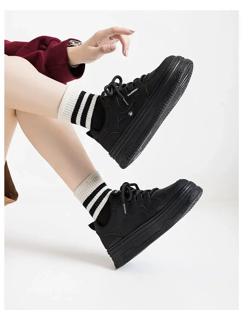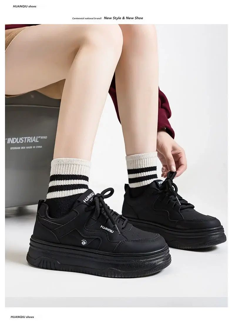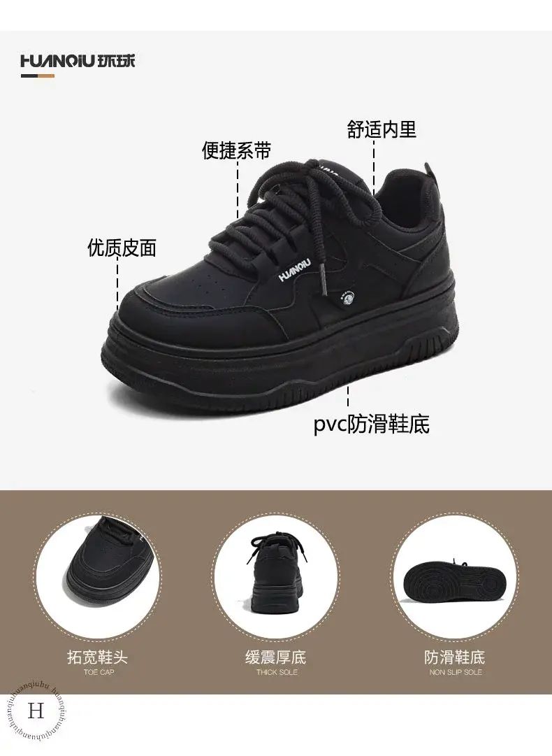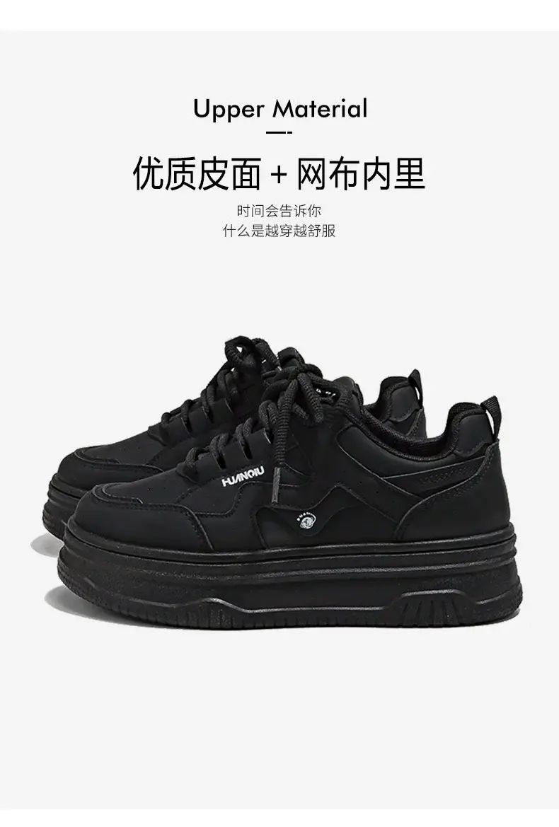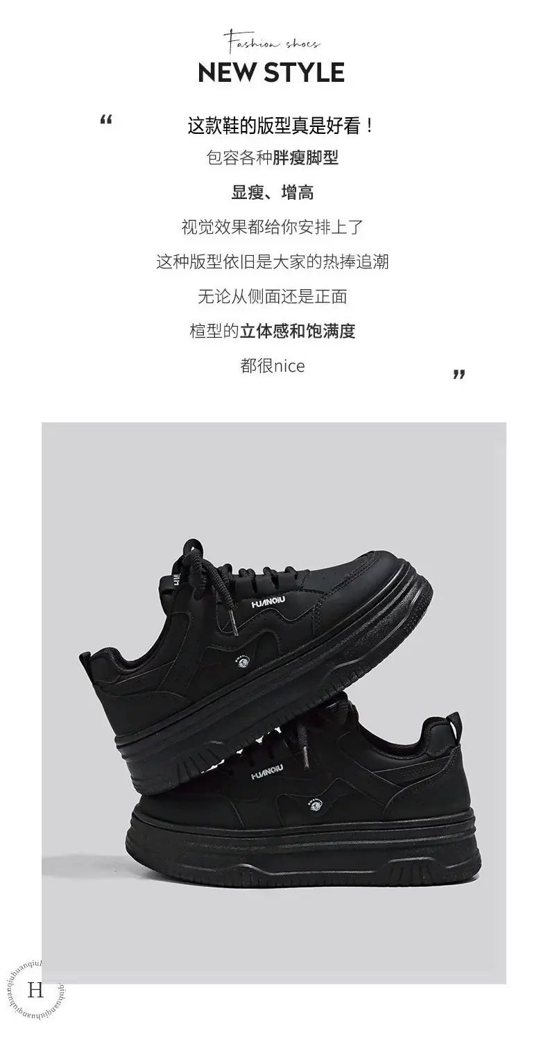 商品簡介 环球黑武士甜酷小白鞋子女2025新款爆款百搭厚底板鞋设计感休闲鞋;黑色;35
