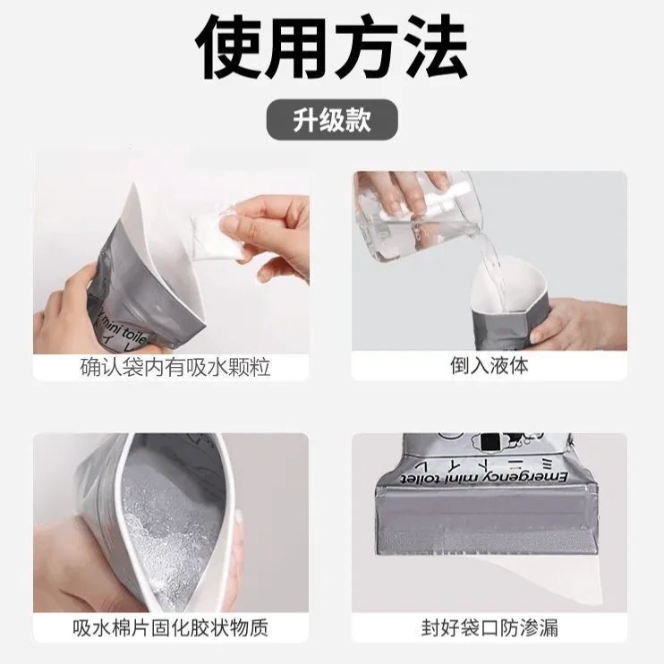 ✔️ 男女通用 ✔️ 方便攜帶 ✔️ 大容量700cc ✔️ 口袋加寬 快速解決內急、堵車時可使用、野外活動可使用、行動不便可使用 更可作嘔吐袋使用,暈車暈船都無有怕 袋內有特別設計的自封口,用完輕輕一捏即可嚴密封口丟棄 內含高分子吸收劑,令裝載液體馬上凝固 減低漏出風險,清潔又衛生 可固化尿液防異味 封口設計不滲漏 核心材料:水溶性高分子包。 優點:無需拆包裝,使用方便安全;保持高分子與空氣隔離,持久保質。 |