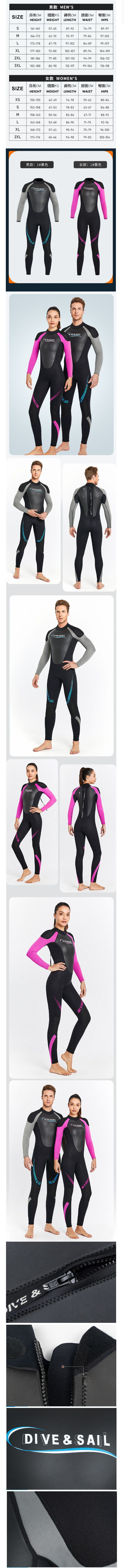 3MM潛水服保暖長袖連體潛水衣防寒衝浪浮潛冬泳衣褲(男款黑色 S-3XL碼)(下單後請聯絡客服確認發貨尺碼)