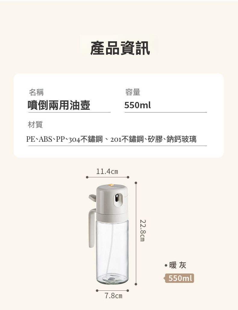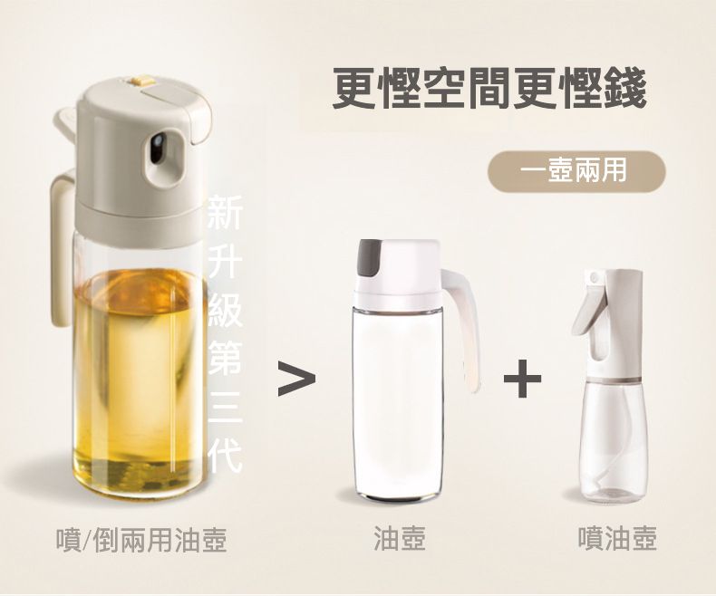 選擇全新升級的第3代噴/倒兩用油壺,讓你的烹飪生活更加便利和健康。