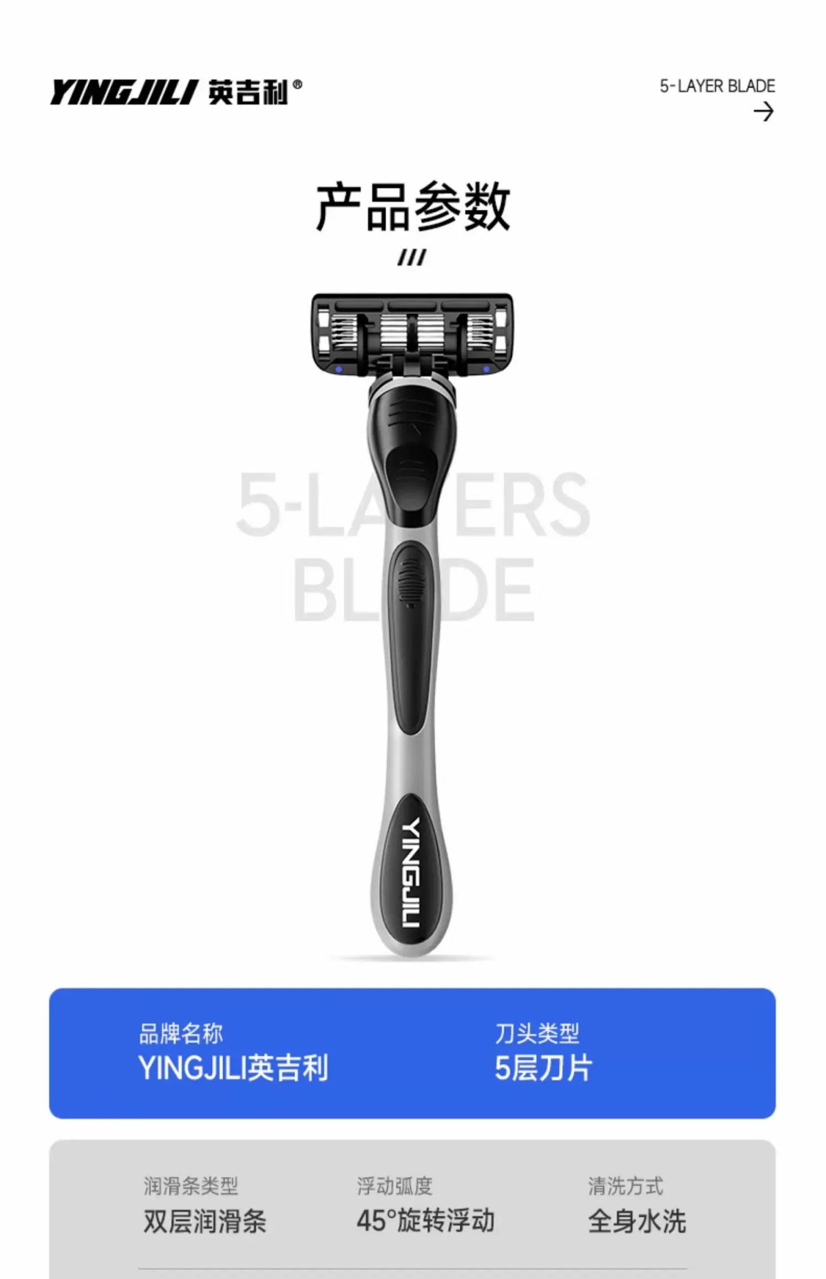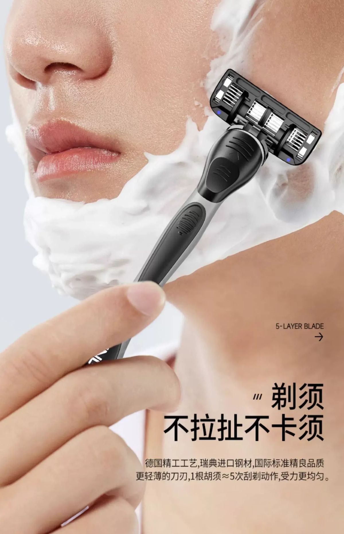 | 商品簡介 | 英吉利小青龙剃须刀手动刮胡刀男士刀头套装防刮伤胡须刀五层刀片;;颜色分类:1柄4刀头送须泡+收纳盒 |