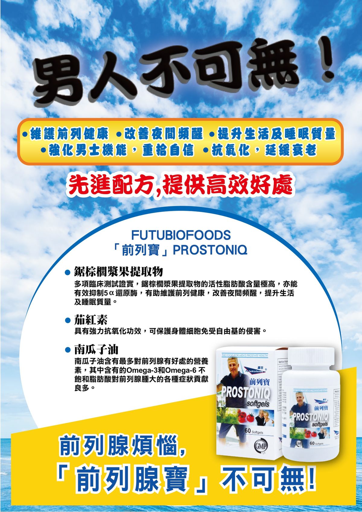 「富生前列寶」軟膠囊,依據德國嚴謹生物草本科技研製,可作前列腺肥大患者或前列腺腫脹高危一族作營養保健品用。