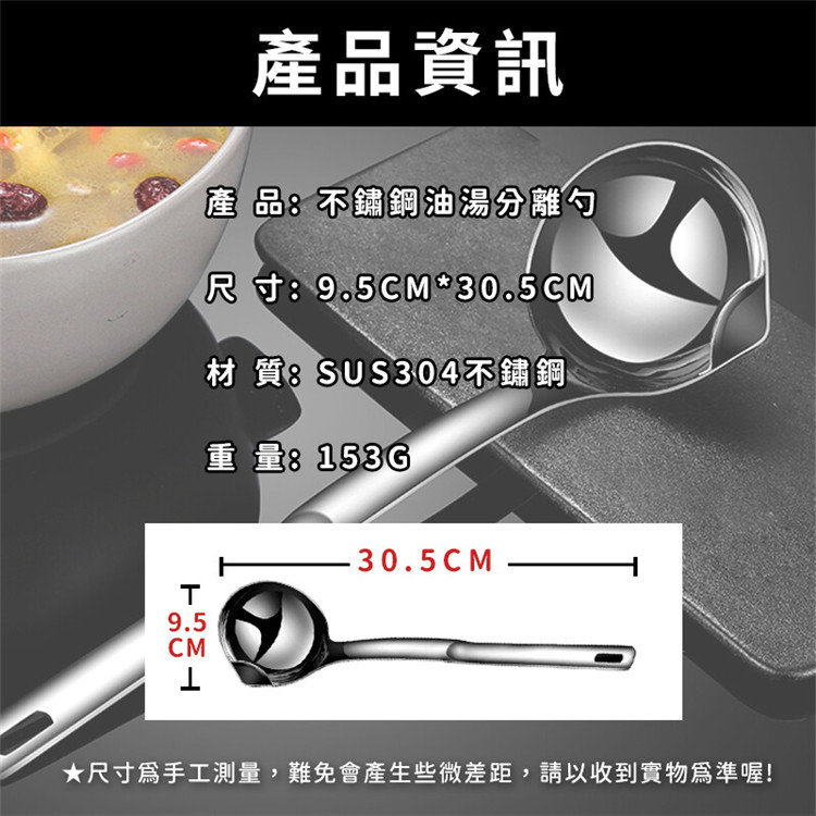 【產品介紹】 現在大家提倡少油健康 愛喝湯又怕油的朋友們看這裡 這支可以輕鬆濾油的湯勺~~~ 利用油水不相溶,以及密度大小的原理! 簡單輕鬆就幫你濾油 |