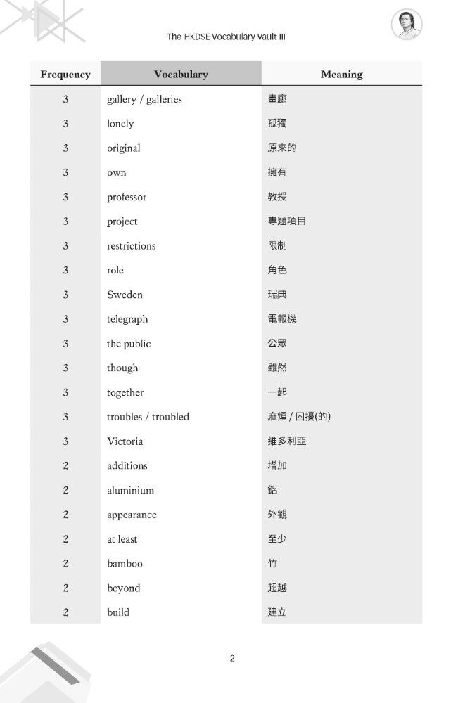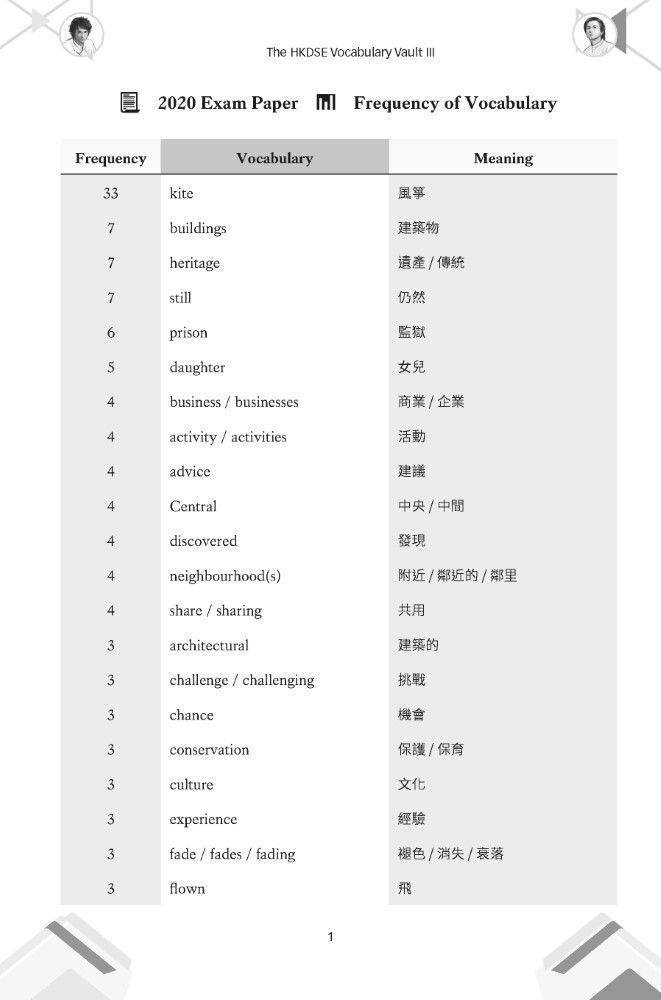 The HKDSE Vocabulary Vault aims to alleviate the often-daunting task of memorizing a vast number of words by providing students with a streamlined and effective learning tool. It serves as a valuable resource for HKDSE candidates and anyone seeking to enhance their English vocabulary proficiency. This book covers vocabulary from the 2020 Exam Paper to 2025 Exam Paper. 作者:Ian Chan、Michael Chan 語言:英文,部分內容輔以中文解釋