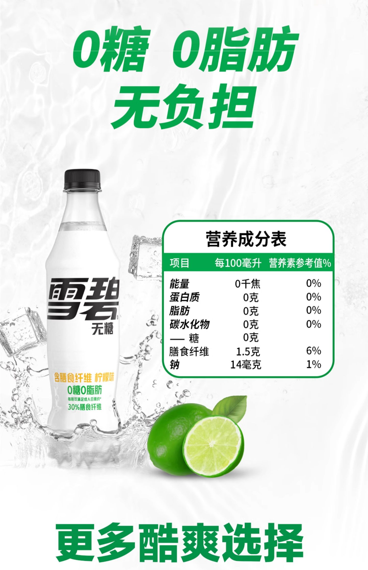 神纤雪碧纤维+碳酸饮料500ml*12整箱零糖零卡汽水平行进口新老包装交替发货;500ml*12整箱 |