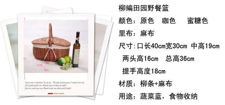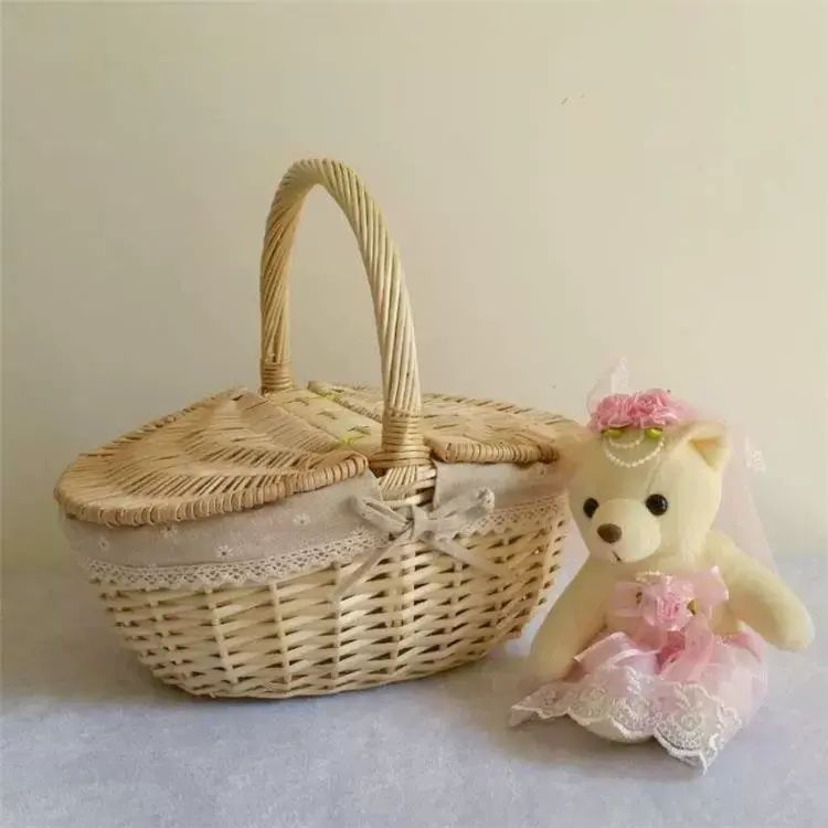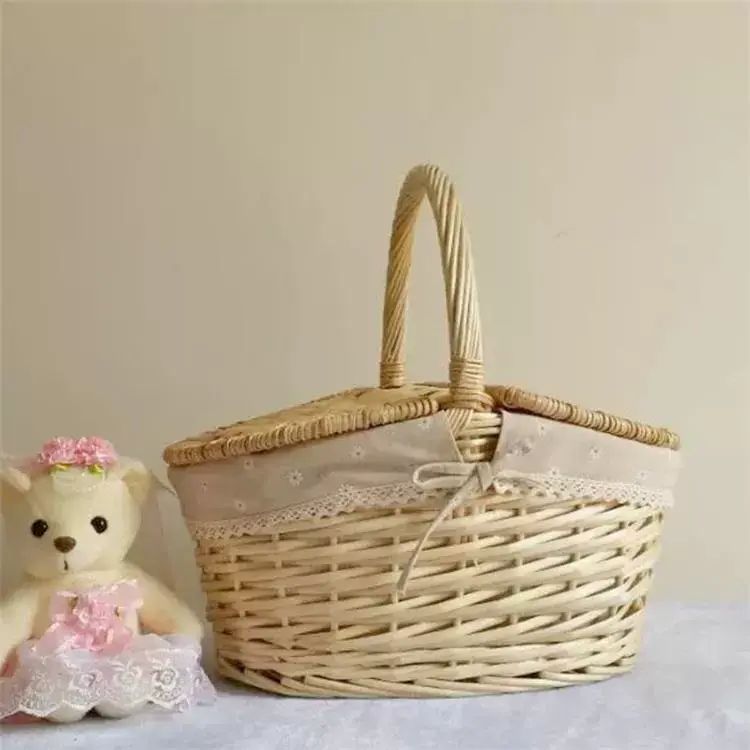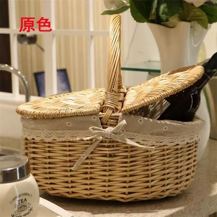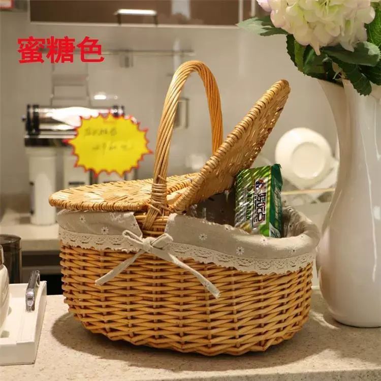 | 商品簡介 | 野餐篮子藤编田园带盖柳编大号水果礼品篮子竹编篮子手提 蓝;;颜色分类:无盖原色小号(口径25*18) |