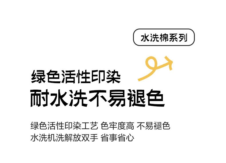 綠色活性印染,色牢度高,不易褪色,可機洗,解放雙手。