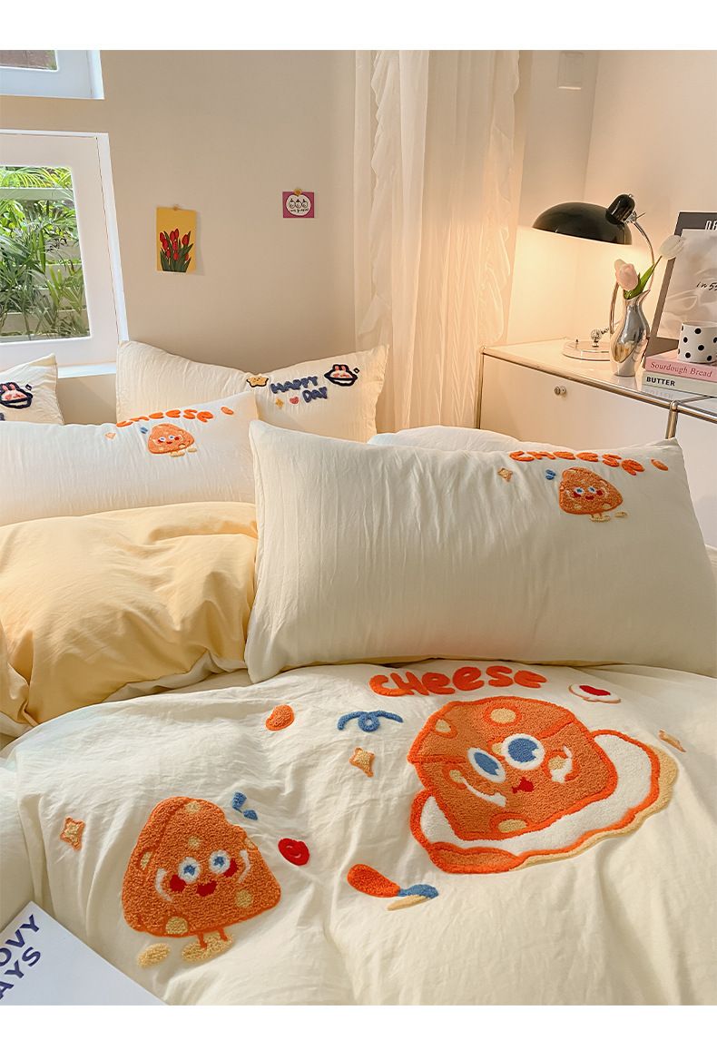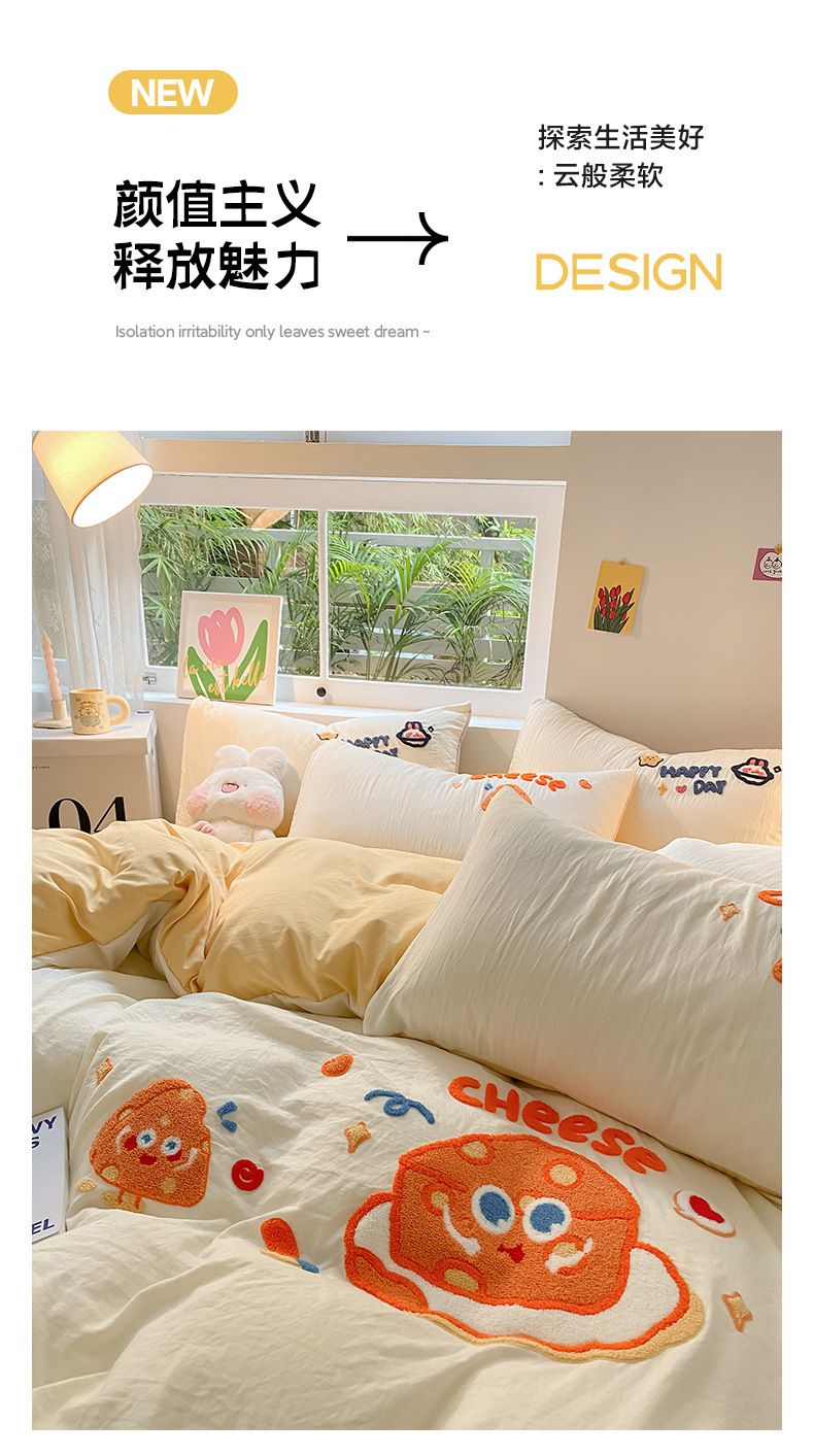水洗棉毛巾繡四件套,柔軟舒適,溫暖整晚;