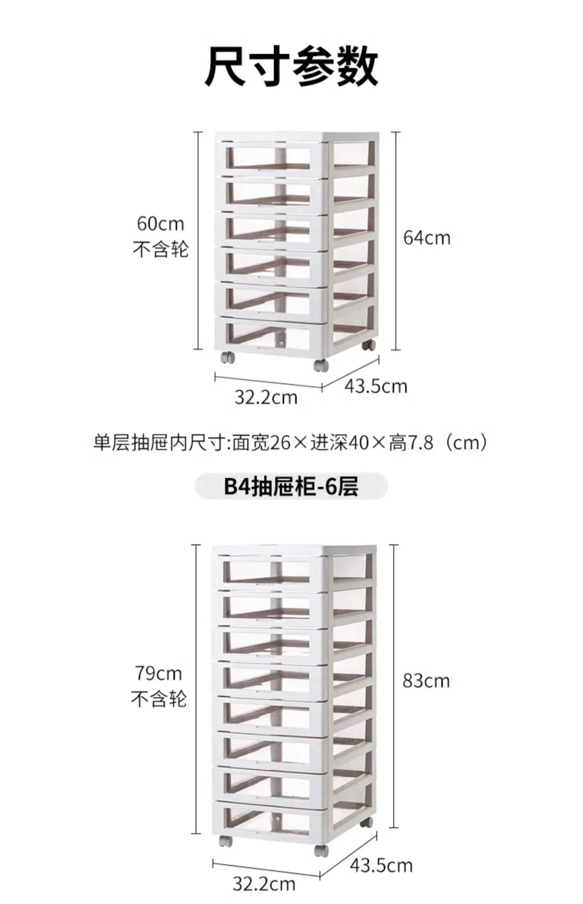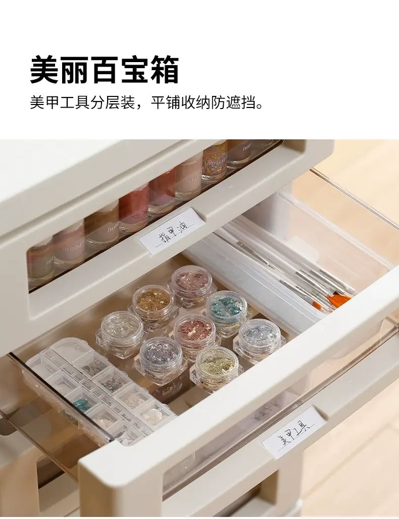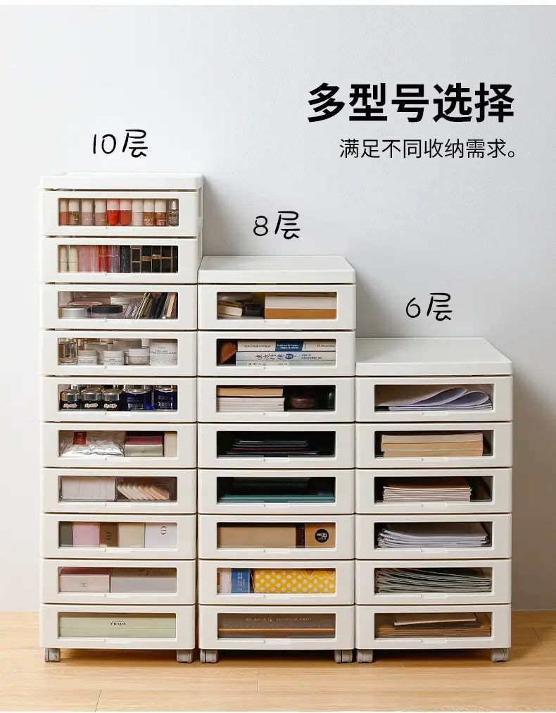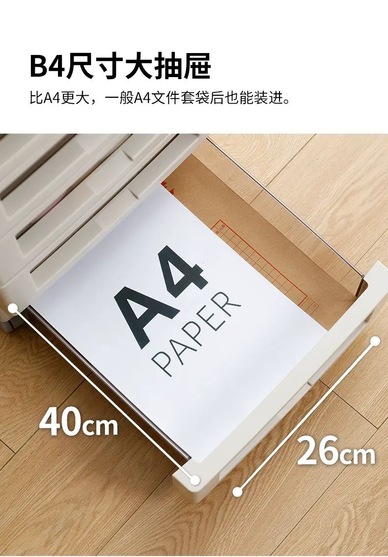 商品簡介 日本霜山文件柜抽屉式收纳柜办公室桌下B4文具储物柜化妆品整理柜;1个;【6层米白色】面宽32.2*进深43.5*带轮高64cm-送标签贴纸