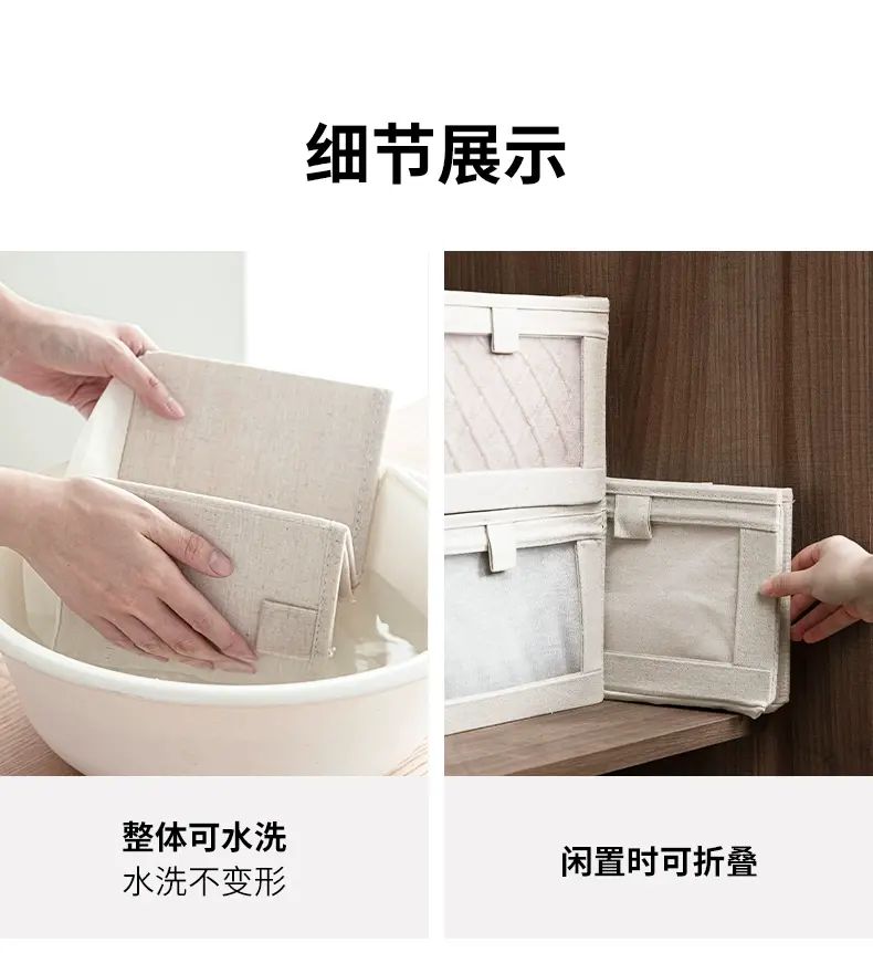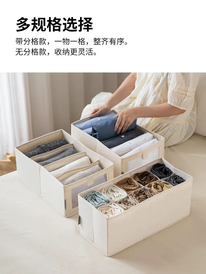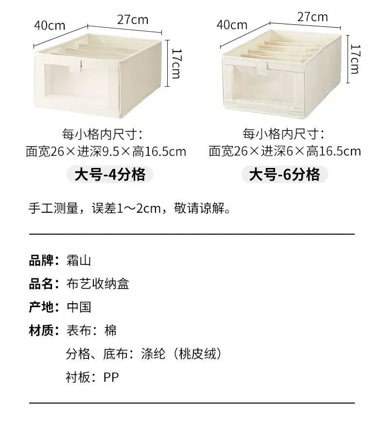 商品簡介 霜山布艺收纳盒可水洗裤子收纳宿舍衣柜整理盒家用包包杂物分类盒;【小号无分格】面宽15*进深27*高17cm
