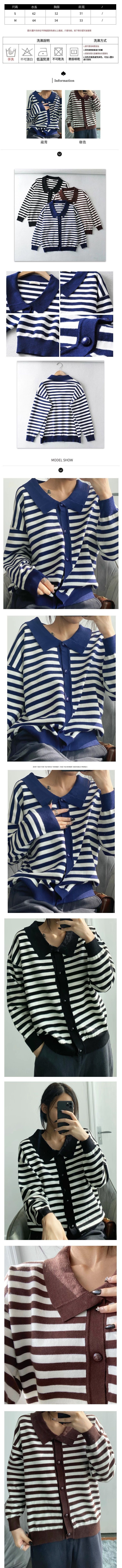 撞色條紋寬鬆針織開衫(咖色)(S/M碼)(下單後聯絡客服確認發貨尺碼)