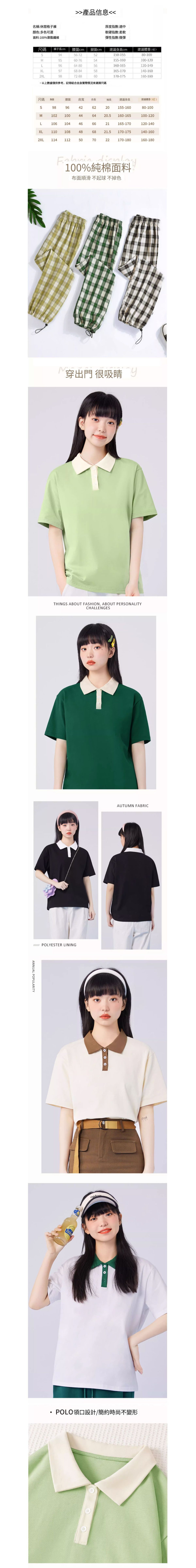 polo領短袖t恤兩件套【奶白色(五瓣花)+黑白褲】【S-2XL碼】(下單後請聯絡客服確認發貨尺碼)