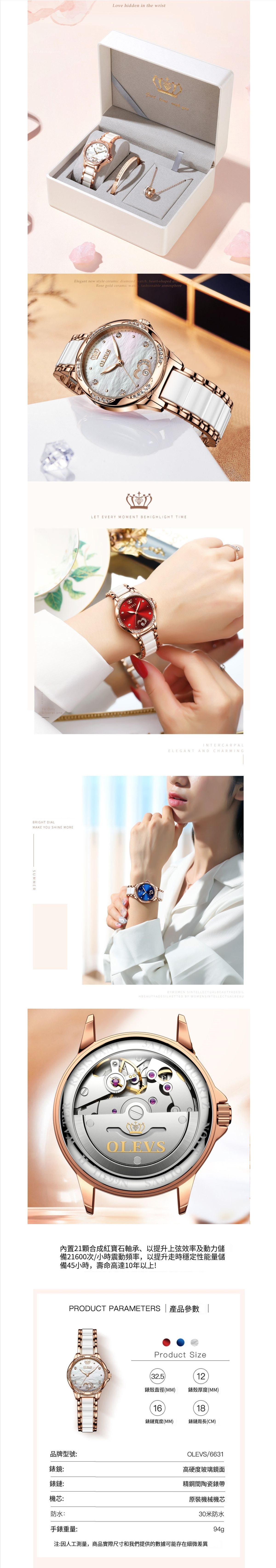 歐利時陶瓷鏈鑲鑽機械錶女士手錶(陶瓷帶玫殼白麵女)