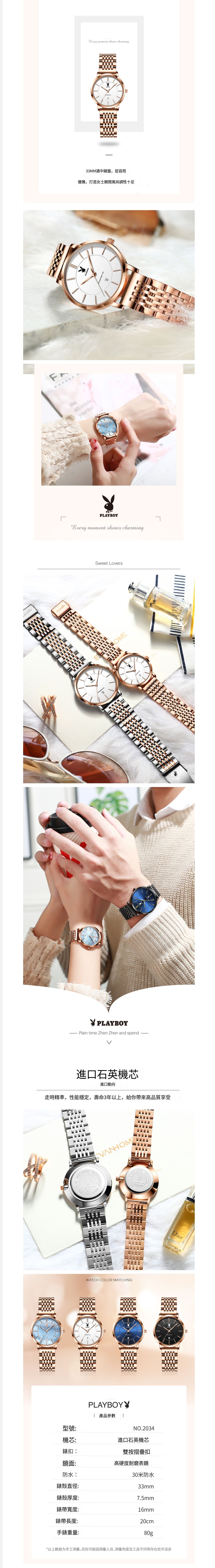 PLAYBOY簡約女士手錶(玫鋼玫殼白麵女)