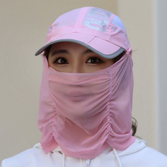 可拆卸遮臉防曬遮陽鴨舌帽女(粉色)