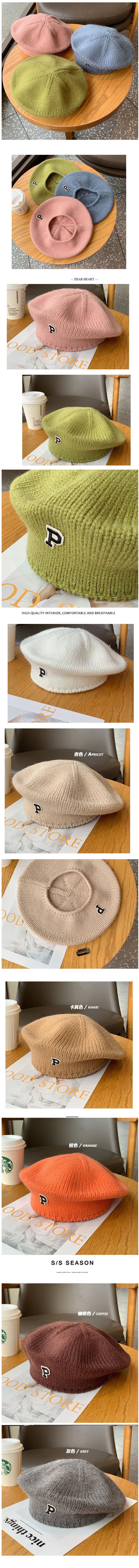 字母P標貝雷帽針織毛線畫家帽子(均碼(55-60cm)彈性頭圍 黑色)#S001108500