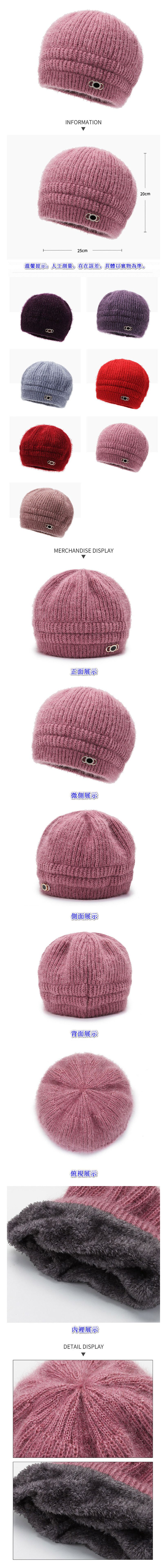 戶外加絨保暖針織帽媽媽帽【粉色】【均碼】#S158033356