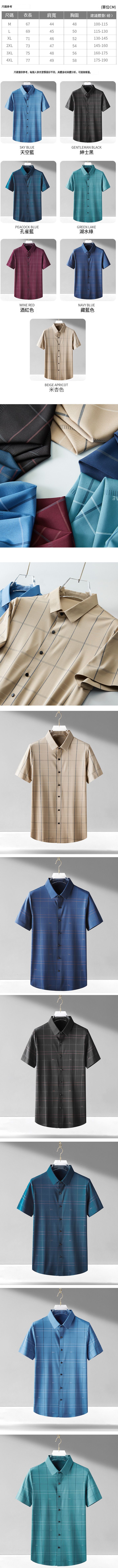 男士格子短袖襯衫(米杏色M-4XL碼)(下單後聯繫客服確認發貨尺碼)#S055008330