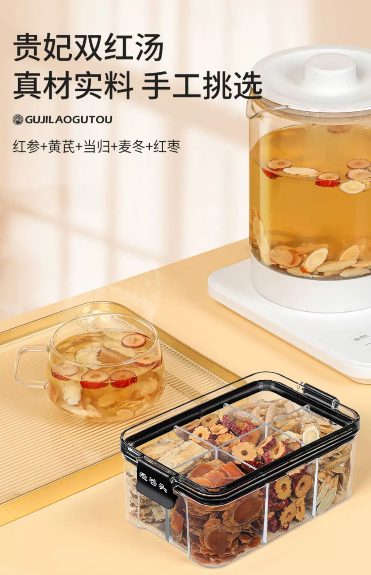谷记老谷头-净口密封罐 双红汤 黄芪50g+麦冬70g+当归30g+大枣60g+红参50g 花茶 果茶 花果茶 养生茶 |