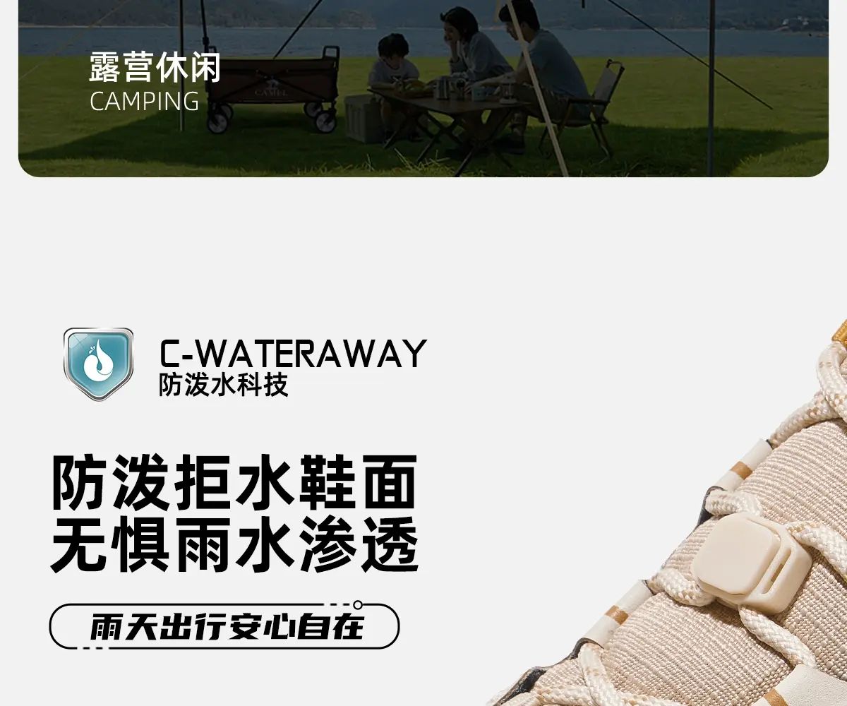 CAMEL骆驼户外,全球户外运动品牌,始终坚定把控产品的高品质需求,秉承精益求精的探索精神,持续科技研发,使骆驼户外产品的实用功能和舒适耐用性受到了户外运动爱好者的认可。CAMEL骆驼户外运动,致力于积极为用户带来更多安全、舒适的户外运动体验。
