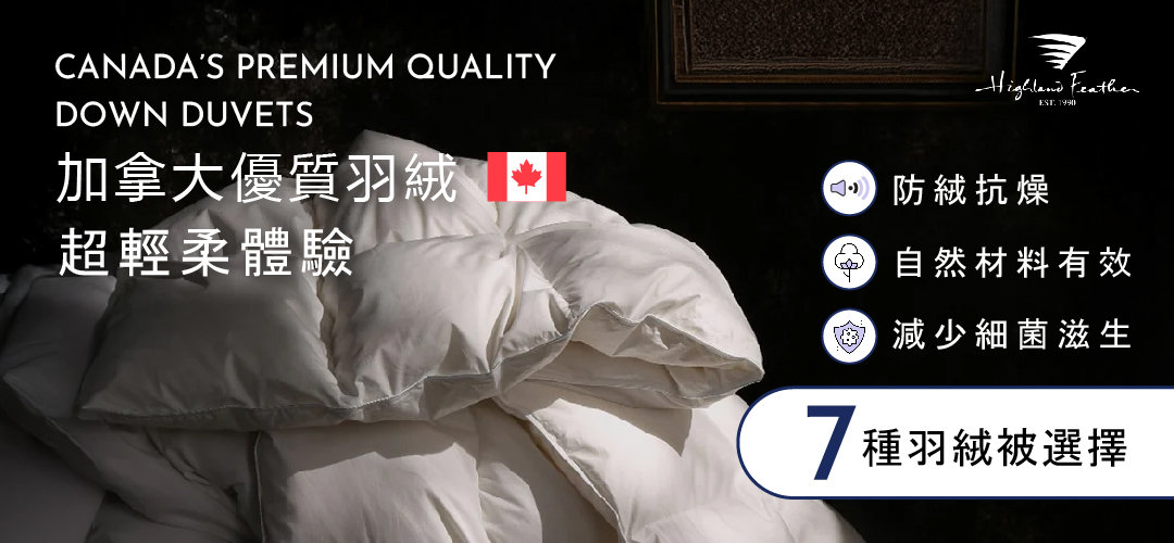 Highland Feather專注經營羽絨製品,是加拿大羽絨協會的資深會員。敝公司在加拿大生產的羽絨被子和羽絨枕頭,三十多年來一直深受北美洲消費者青睞,曾經多次獲得加拿大公共媒體及政府部門嘉獎。每個生產步驟都經過嚴密監控工序, 品質保證。
