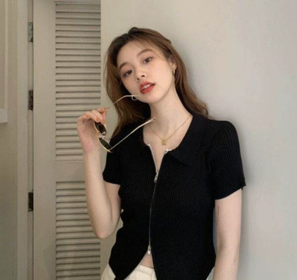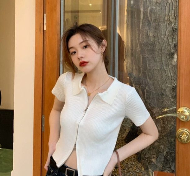 性感雙頭拉鏈短袖t恤(藍色 均碼)#F46015145
