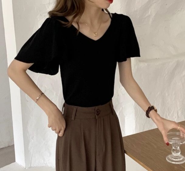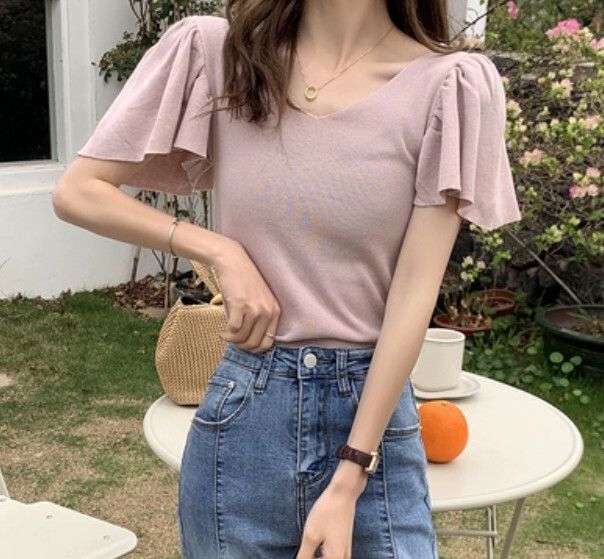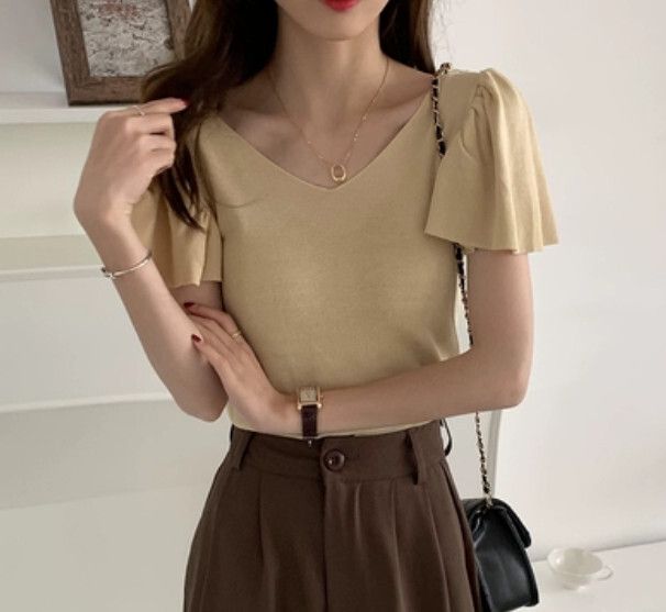 荷葉袖針織上衣(白色 均碼)#F46015114