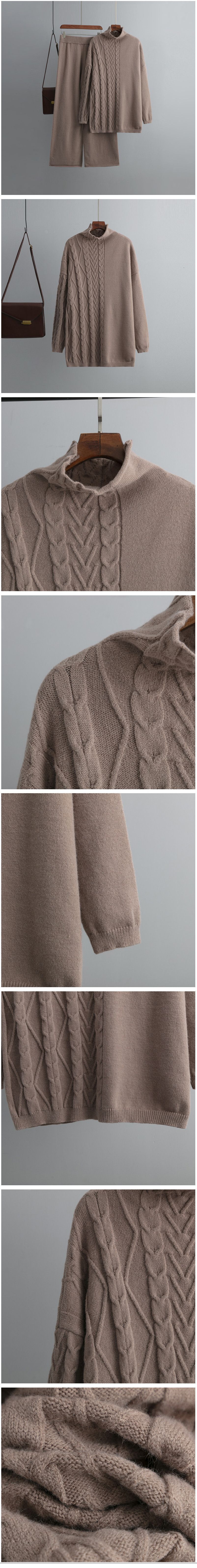 氣質休閒針織毛衣套裝(均碼 上衣+褲子 花咖啡)#F001100148