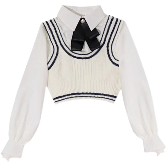 長袖襯衫馬夾上衣兩件套(白色)(規格:S-L碼)(下單後聯絡客服確認發貨尺碼)#F047043496